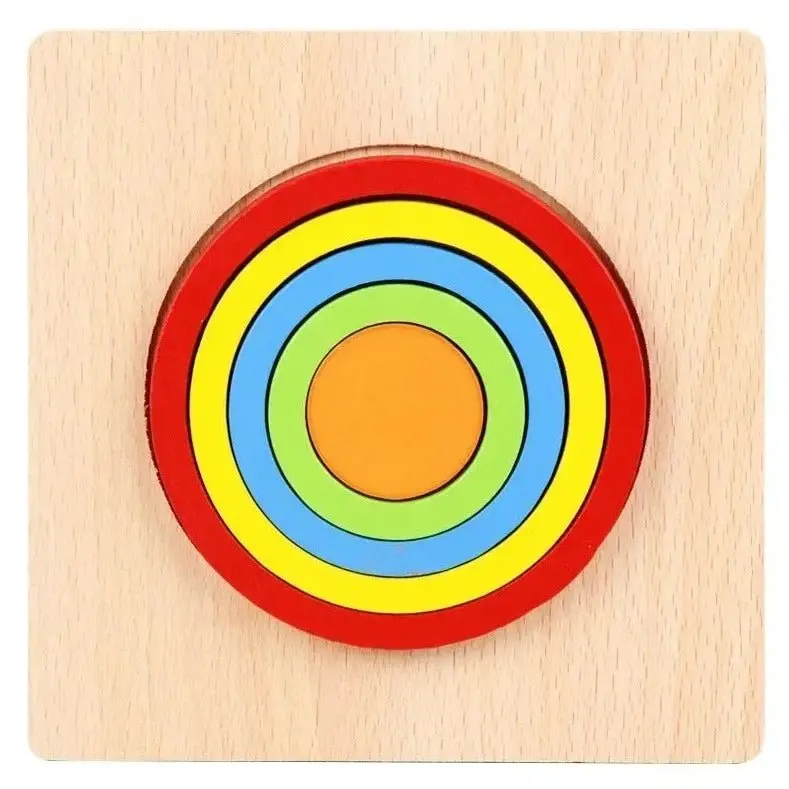 Montessori shape sorting puzzle designed for toddlers ages 2+ to build shape recognition, color identification, and fine motor skills through hands-on play. Each puzzle features a single shape, making it simple and engaging for early learners.