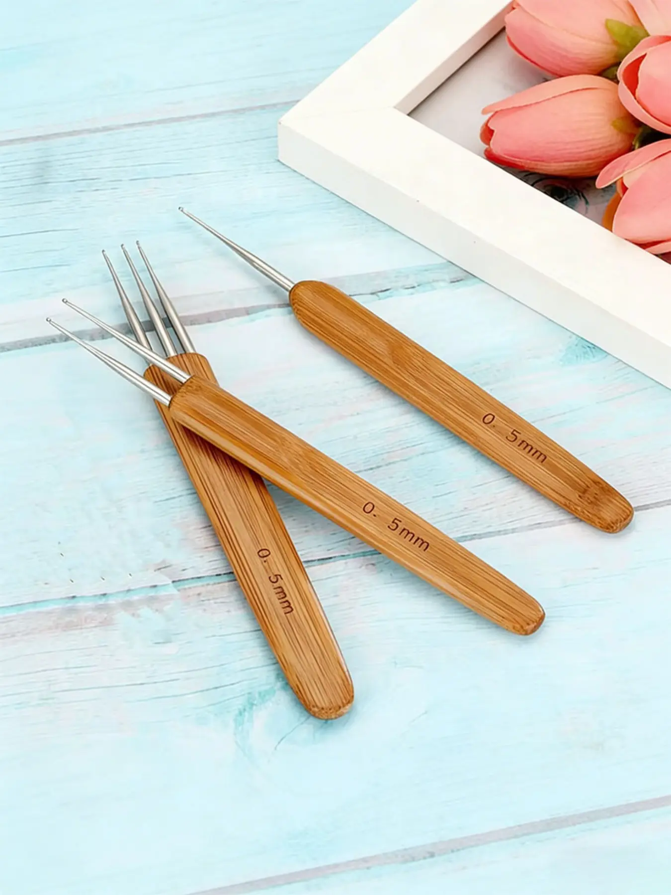 0.5mm High-Quality Wooden Handle Crochet Hook, Precise Needle Tip, Ideal for Wigs, Braiding, Hair Extensions, Handmade Crafting Tools