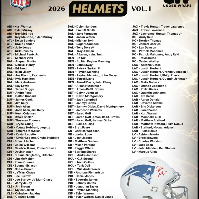 Top names like Tom Brady, Patrick Mahomes, Josh Allen, and Jayden Daniels. These helmets honor legends and current stars. If your team isn't selected, you'll get a Trading Card, Sticker, and Airhead. 🏈