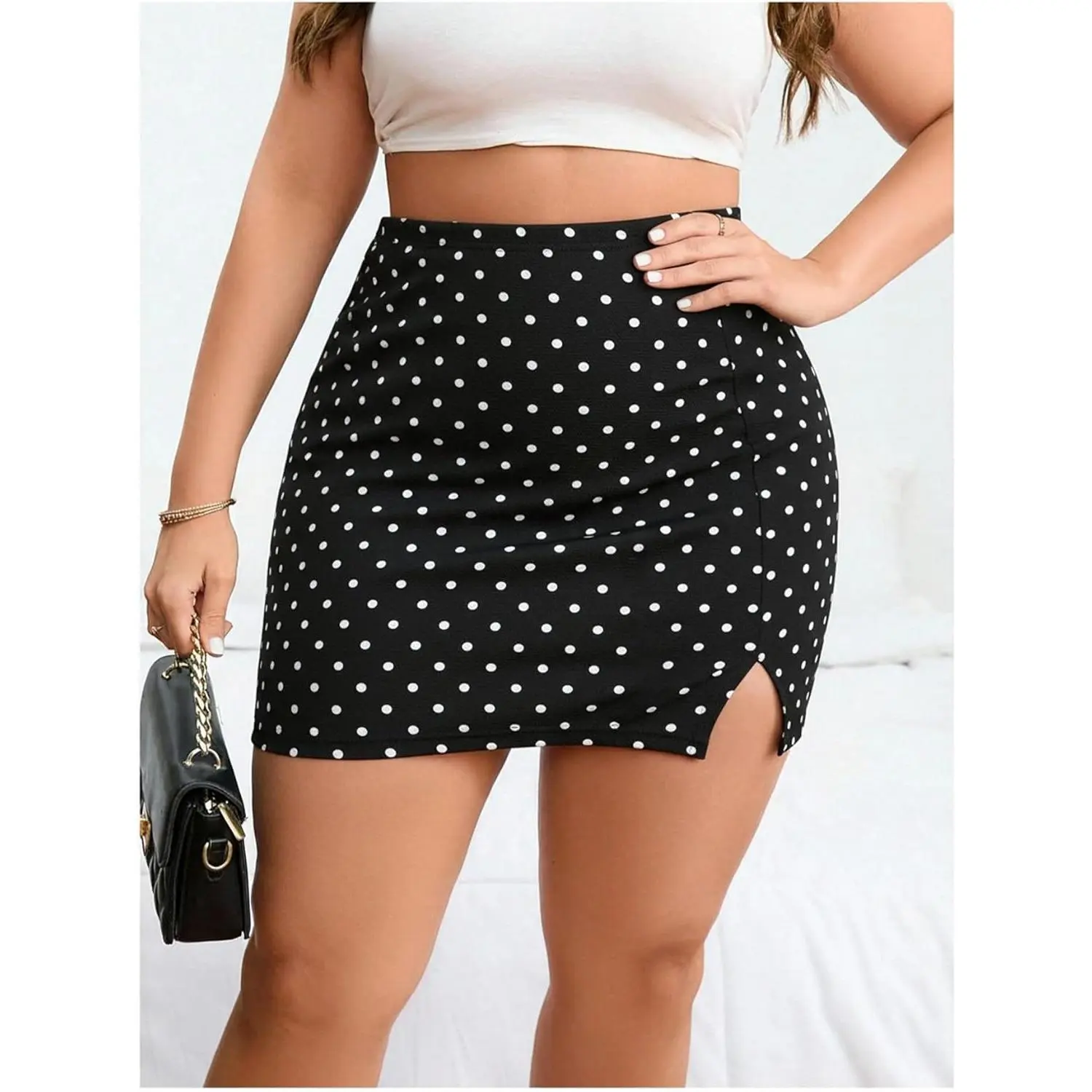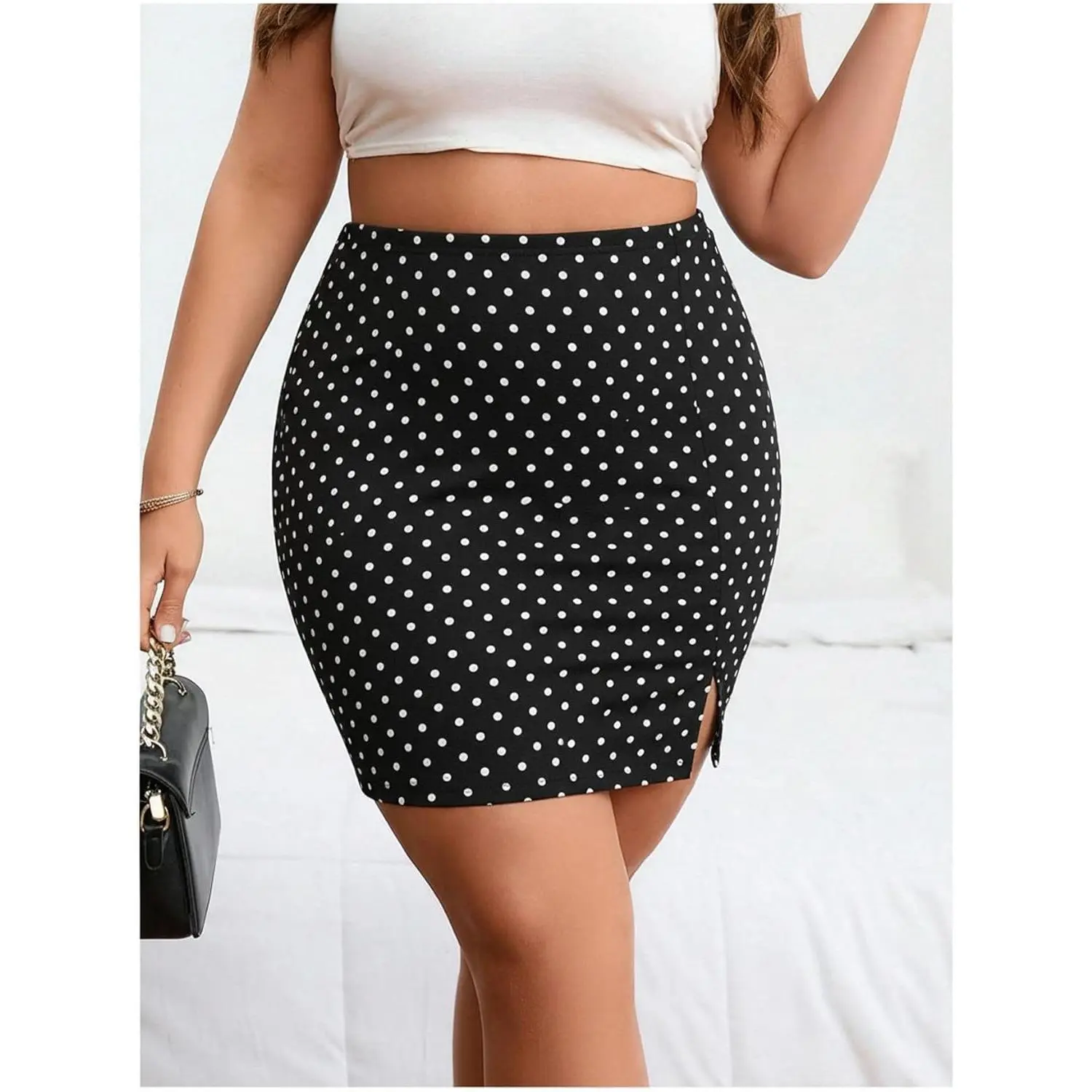 SOLY HUX Women's Plus Size High Waist Elastic Slit Sexy Stretch Fitted Bodycon Mini Skirts
