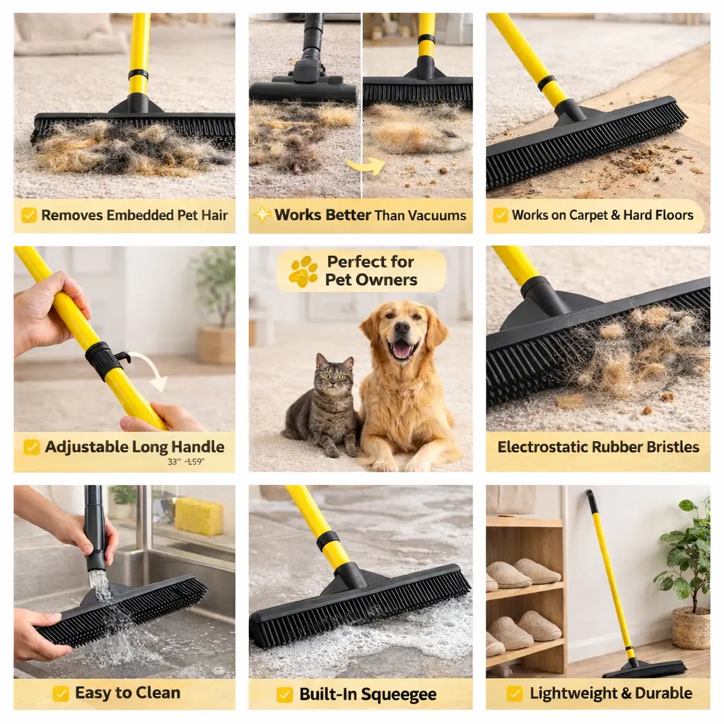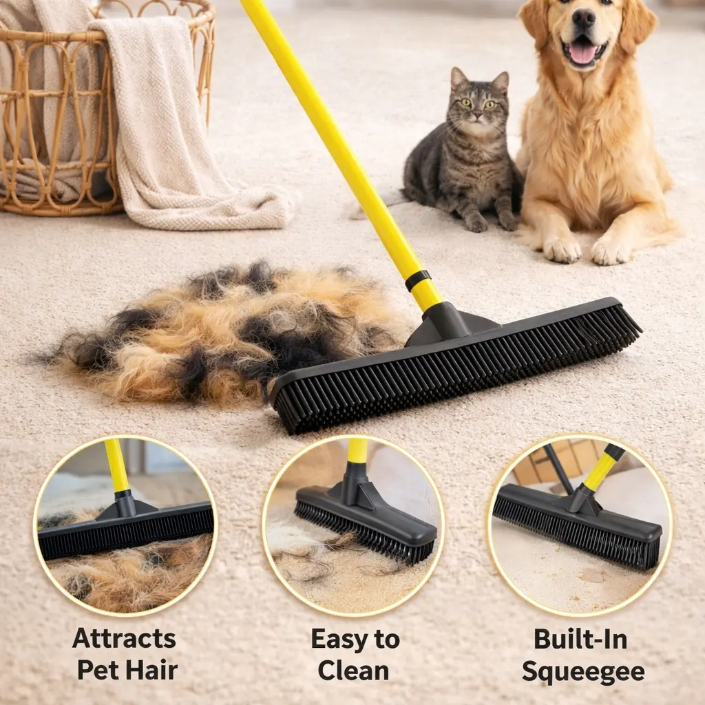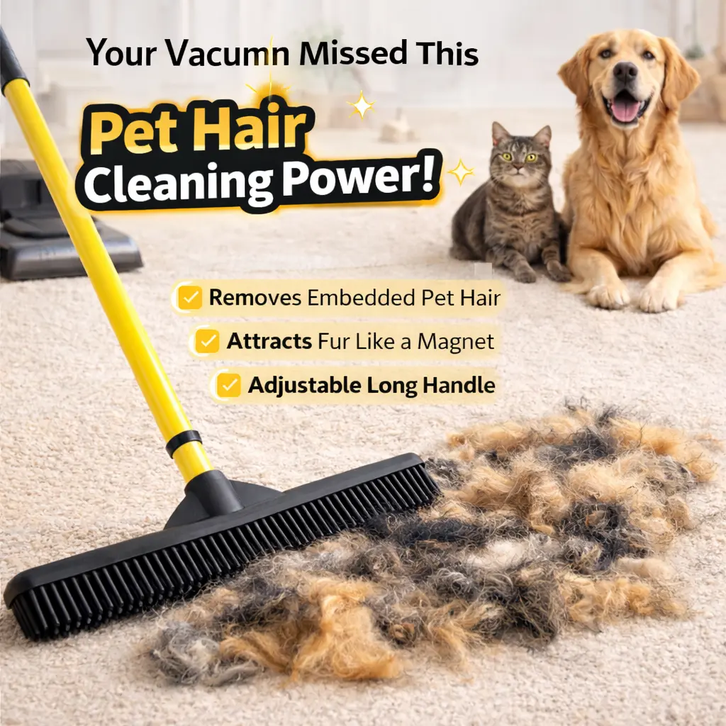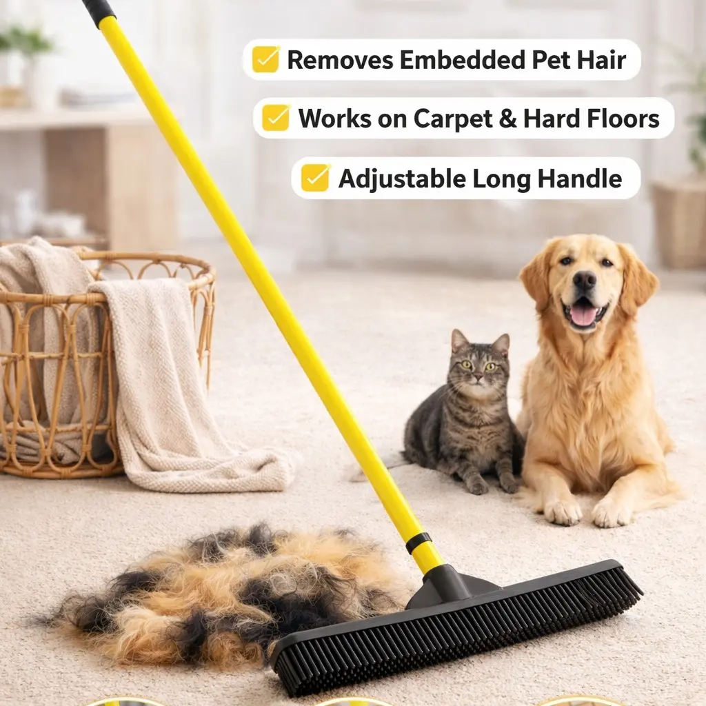 Pet Hair Removal Broom – Removes Embedded Fur from Carpets & Floors