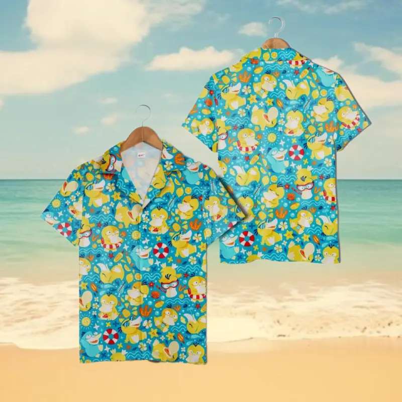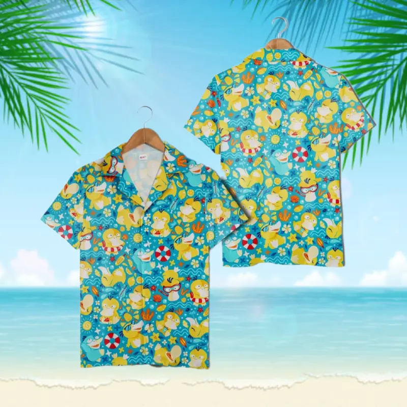 Psy Duck Aloha Hawaiian Shirt Anime Hawaiian Shirt PKM Gifts Hawaiian Shirt for Unisex– Funny, Breathable & Comfy Tropical Outfit, Perfect Gift for Him Her on Birthday, Mother’s Day, Father’s Day, Christmas & Summer Vacation