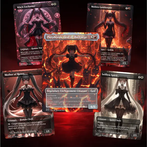 This deck embodies deceptive grace and hidden lethality — a commander that appears delicate, yet controls the battlefield through precision, manipulation, and sudden explosive plays. Perfect for players who enjoy aesthetic-driven decks with a sinister edge and clever, calculated gameplay.