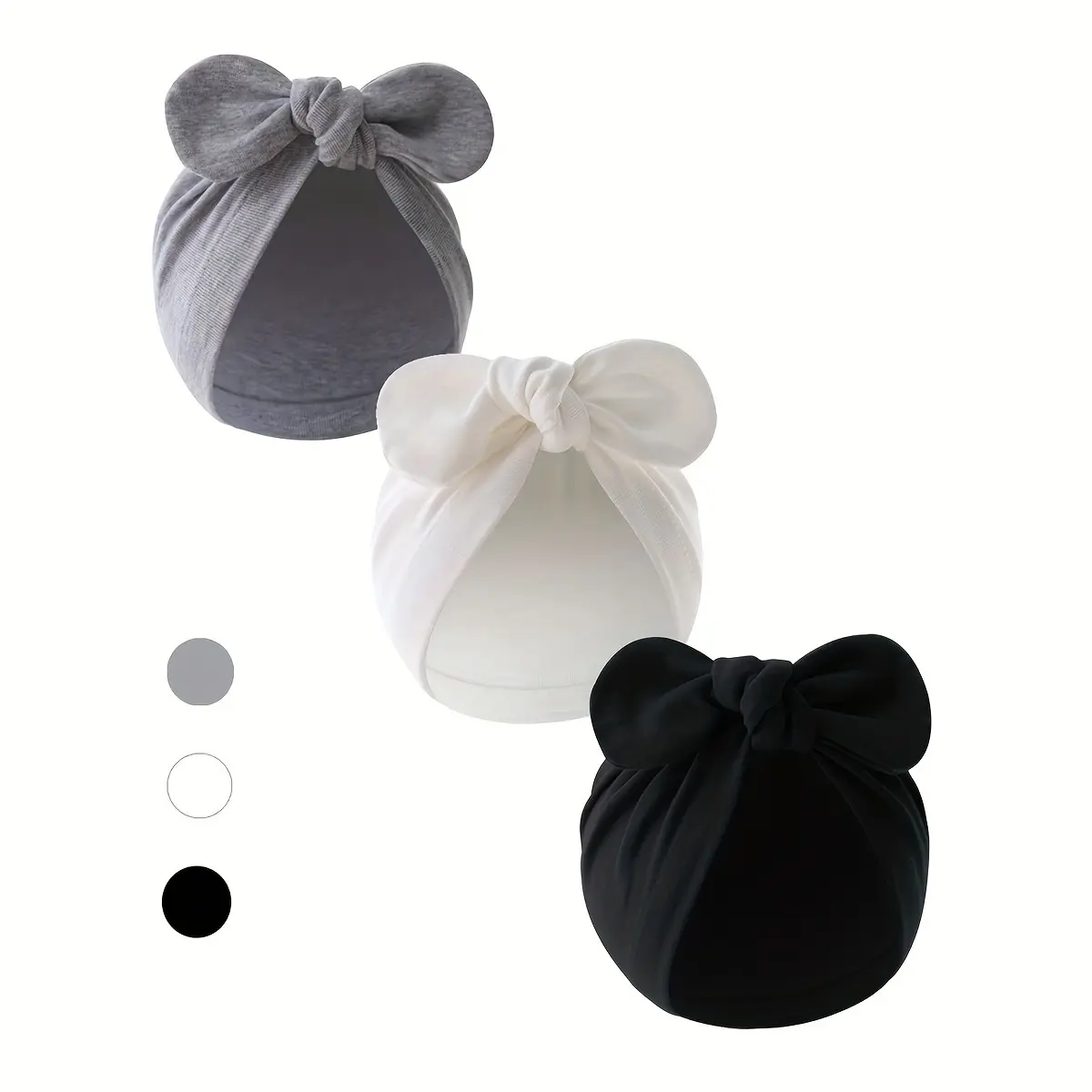 A Set of Three Soft Hats Newborns, Including a Knotted And Multi-Colored Cotton Bath Hats Infants