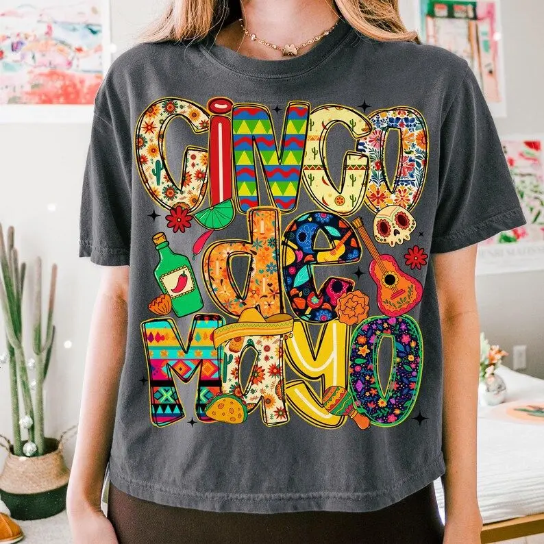 5. Cinco De Mayo Shirt, Mexican Fiesta Party Tee, Let's Fiesta Mama T-Shirt, Funny Taco Tuesday Shirt, Sombrero Graphic Tee, Fiesta Outfit Gift