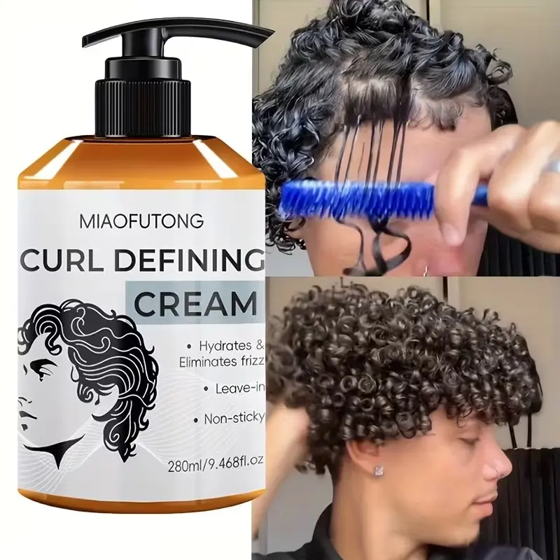 Men's Favorite 9.468fl.oz Curl Defining Cream with Moroccan Argan Oil, Coconut Oil & Shea Butter for Long-Lasting Bounce - Perfect for Leslie Waves, Curly and Loose Curls, Hydrates & Enhances Definition while Smoothing Frizz - Essential Travel Gift for Bo