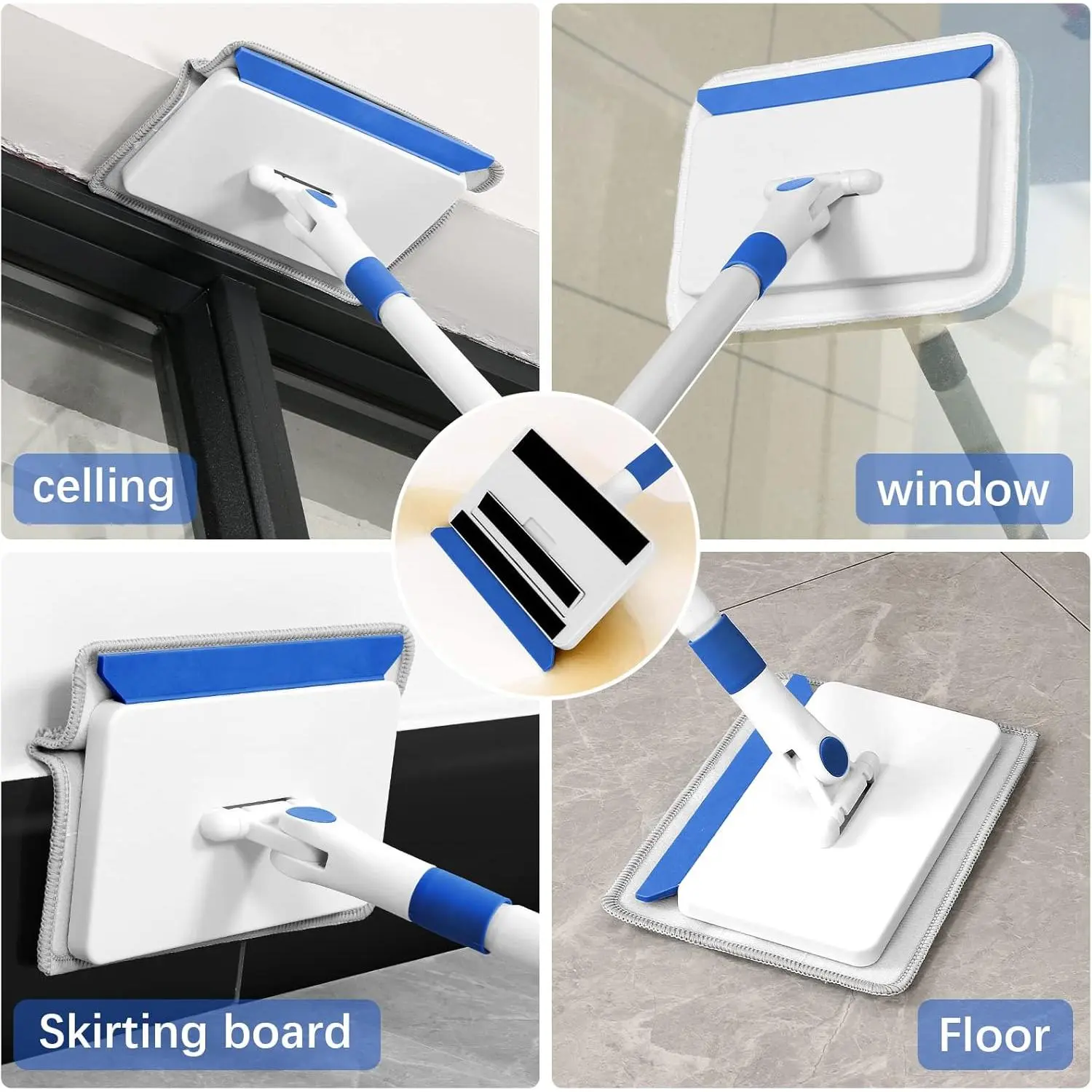 [Perfect Design] LIYFUHY wall cleaning tool combines the functions of flat wall cleaning and baseboard cleaning.Our upgraded baseboard cleaner tool with handle is the ultimate cleaning solution for your home.Quick cleaning without dead ends![Sturdy and Adjustable Poles]The handle of our baseboard cleaning tool is very strong and does not easy to break.It comes with 4 extension poles, the length can be adjusted freely,Up to 57.8 inches when combined to adapt to different heights of cleaning work.This means you can clean without having to bend, stretch, kneel, or crouch.And the pole grip concave finger design is very soft and fits your hand.[Flexible Head Design]Our baseboard duster features a 360-degree swivel design,It allows you to clean from any Angle according to your needs.Make cleaning tasks easier.[Different Cleaning Pads]Our wall cleaner comes with two microfiber cleaning pads and two chenille cleaning pads.Two different materials of cleaning pads, you can change at any time according to different cleaning needs.The cleaning pad adopts a sticky design,easy and fast to replace.Cleaning pads are wet and dry, washable, reusable, helping you save money and reduce waste![Multi-Use Cleaning Tool]Our mop with a long handle is not just for cleaning baseboards,The mop panel has an adjustable raised design that can be turned off to use it as a flat mop. It's great for cleaning baseboards, walls,floors,ceilings, cars, door or window trim, banisters, fireplace mantles, and much more.Providing more options for household cleaning.
