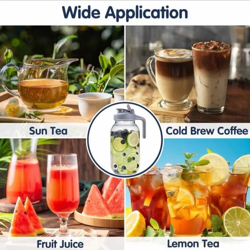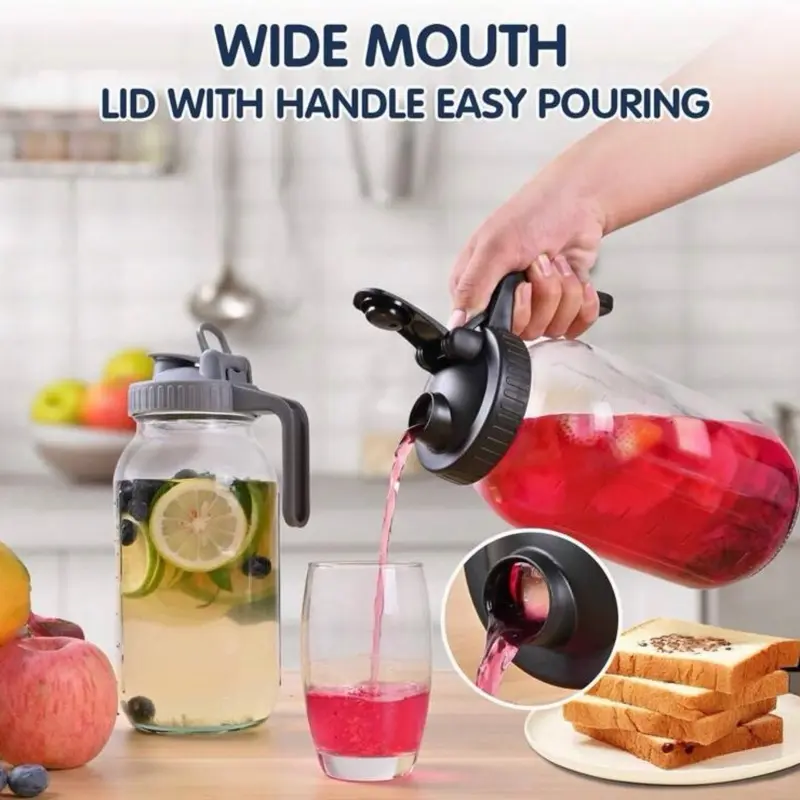 Pitchers With Lid, Set Of 2, 64oz Airtight Jars For Fridge, Wide Mouth Water Jugs For Cold Brew Coffee, Iced Tea, Milk, Food Storage, Sun Tea Jar