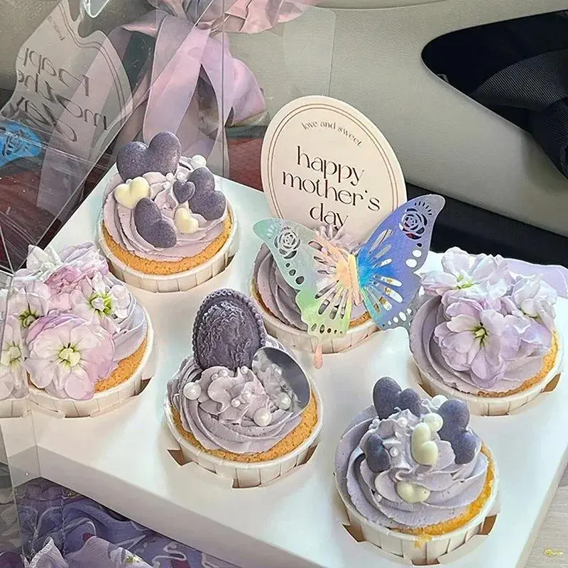 10 sets of Mother's Day cake decorations, pink heart-shaped flowers, rose decorations, paper cupcakes, desserts