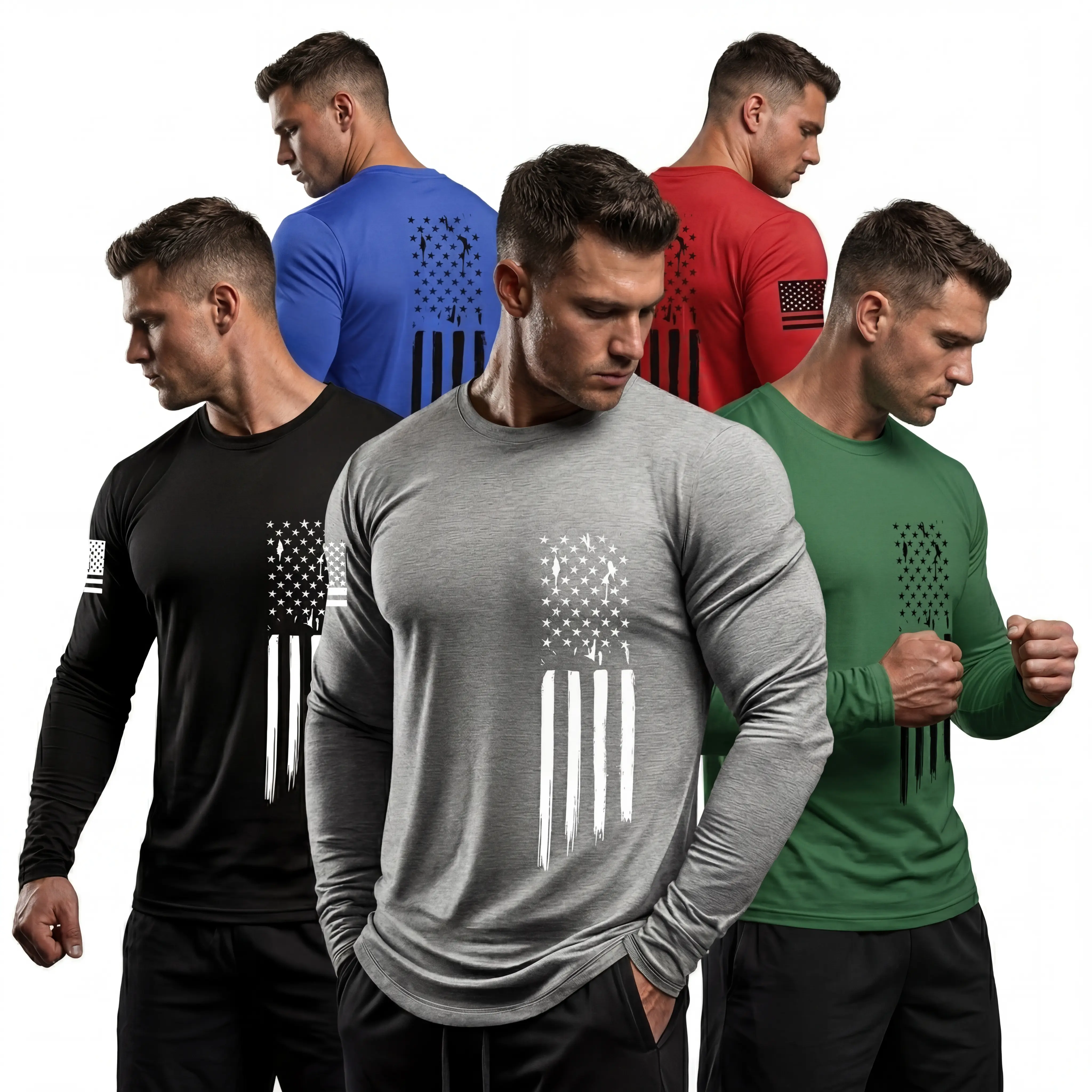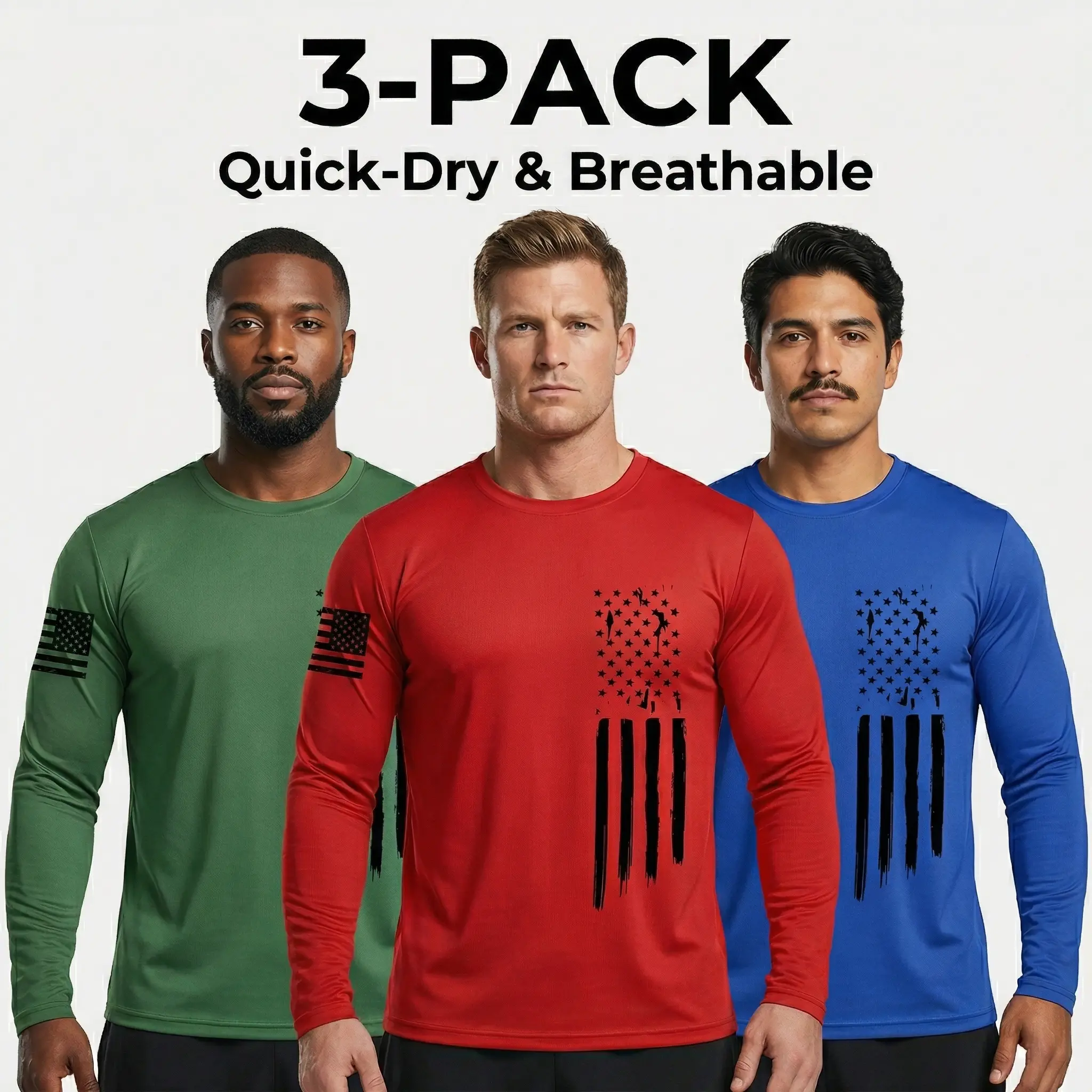 Men's [3-Pack] Long Sleeve Active T-Shirts | Quick-Dry Breathable Athletic Fit | Independence Day Special Patriot Apparel spring and autumn men's clothing Athletic Apparel Athletic Mesh Athleisure Street Fit