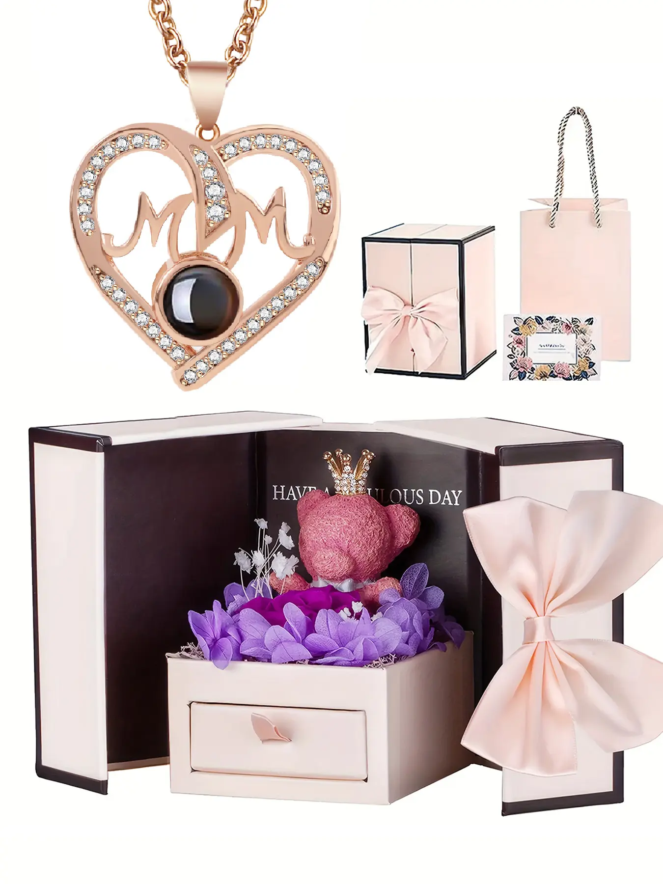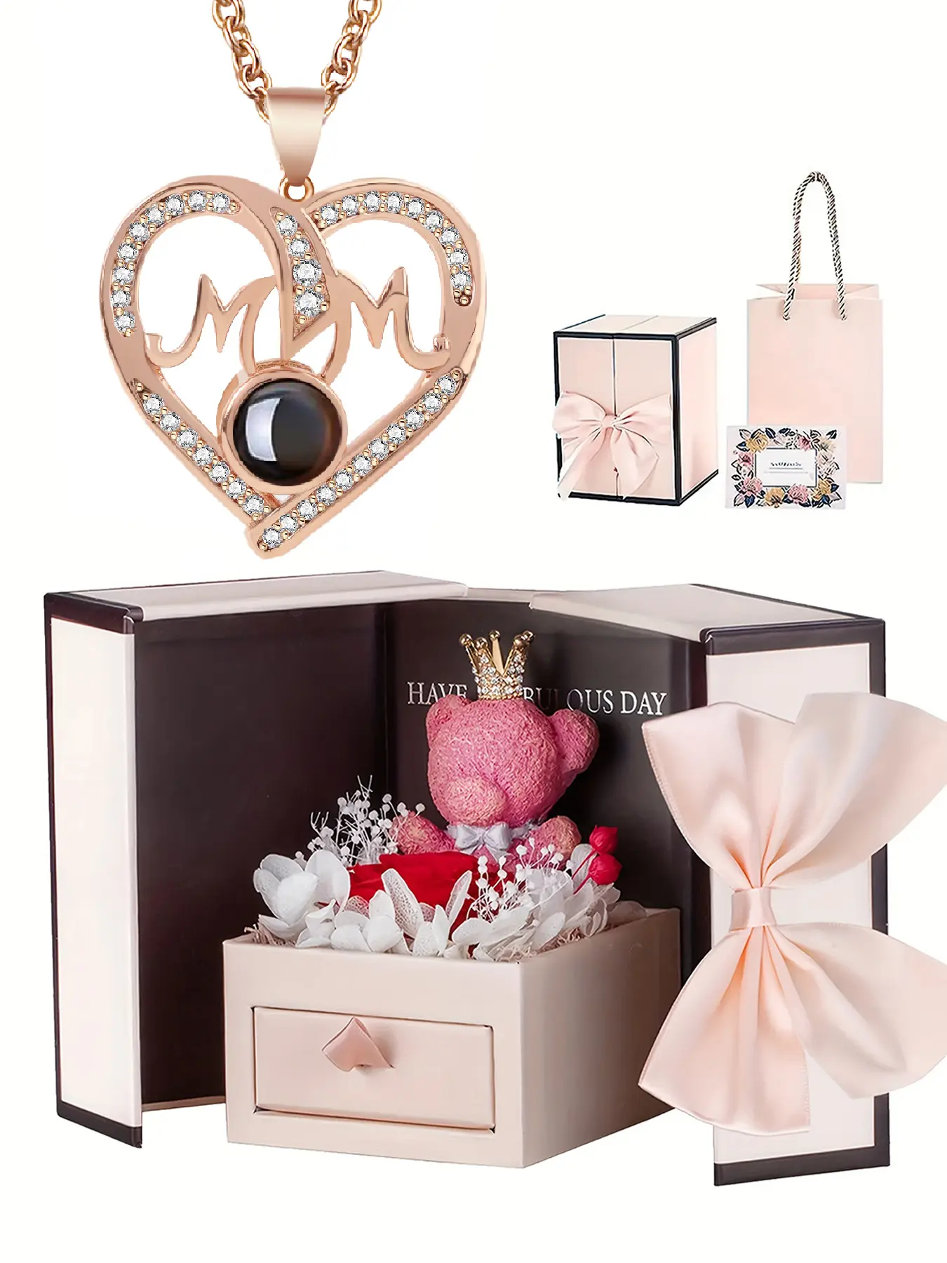 The gift from the husband to his wife, a gift for a new mother, the love projection necklace and the rose bear gift box, a Mother's Day gift, the best gift for her, suitable for wearing in various occasions