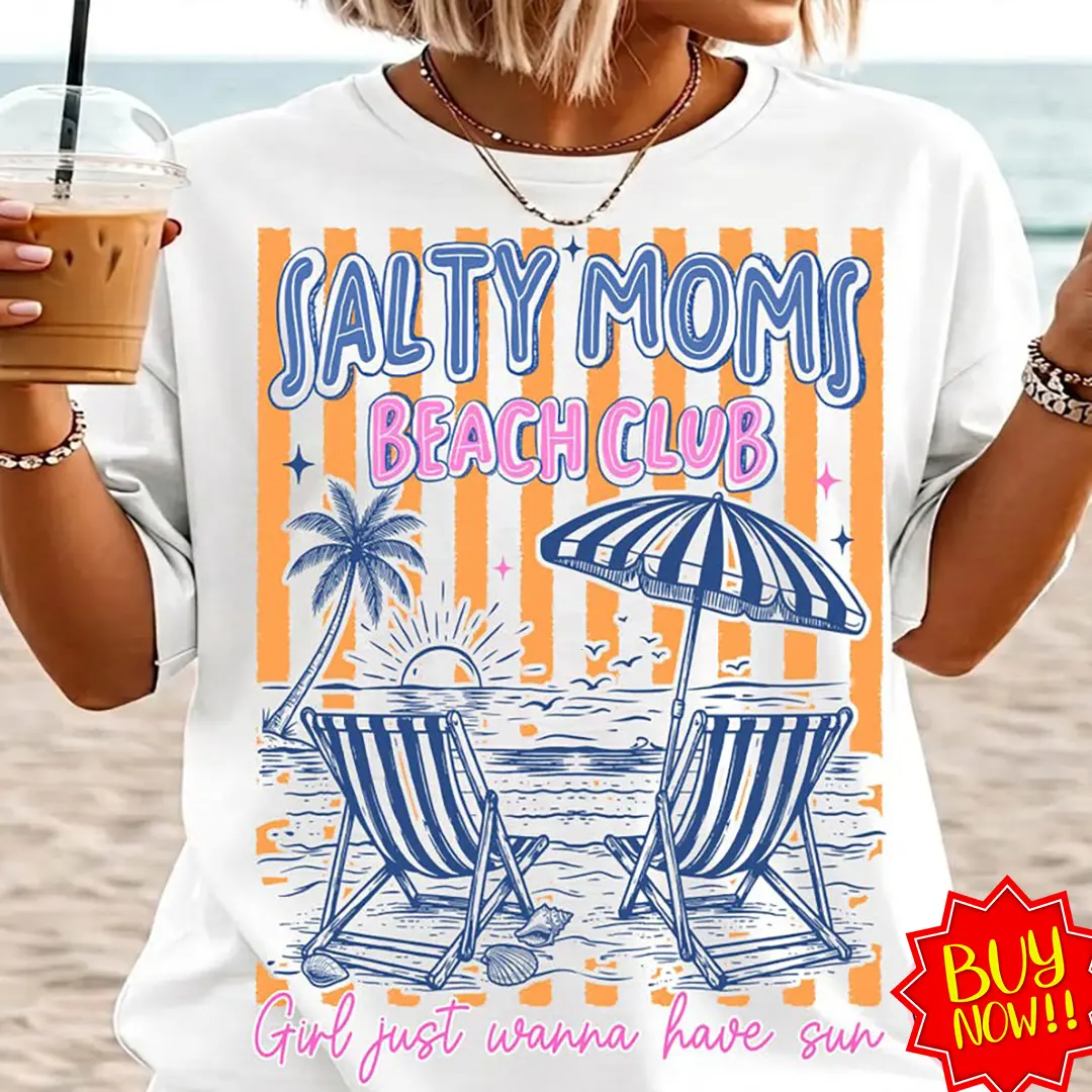 5. Salty Moms Beach Club Shirt, Funny Retro Summer Tee, Sarcastic Beach Mom Graphic, Coastal Vibes Outfit, Comfort Colors T-Shirt.
