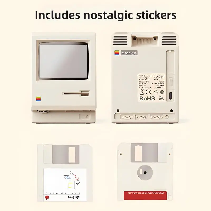 Retro 1984 PC Aesthetic·Constructed of ivory ABS/PMMA.·Authentic miniature model of an early personal computer.·Perfect for retro desktop decor and tech enthusiasts.High-Contrast Pixel Display·Large time mode.·Year-round calendar mode.·Day/date/temperature readouts.·Hidden pixel smiley face startup animation.