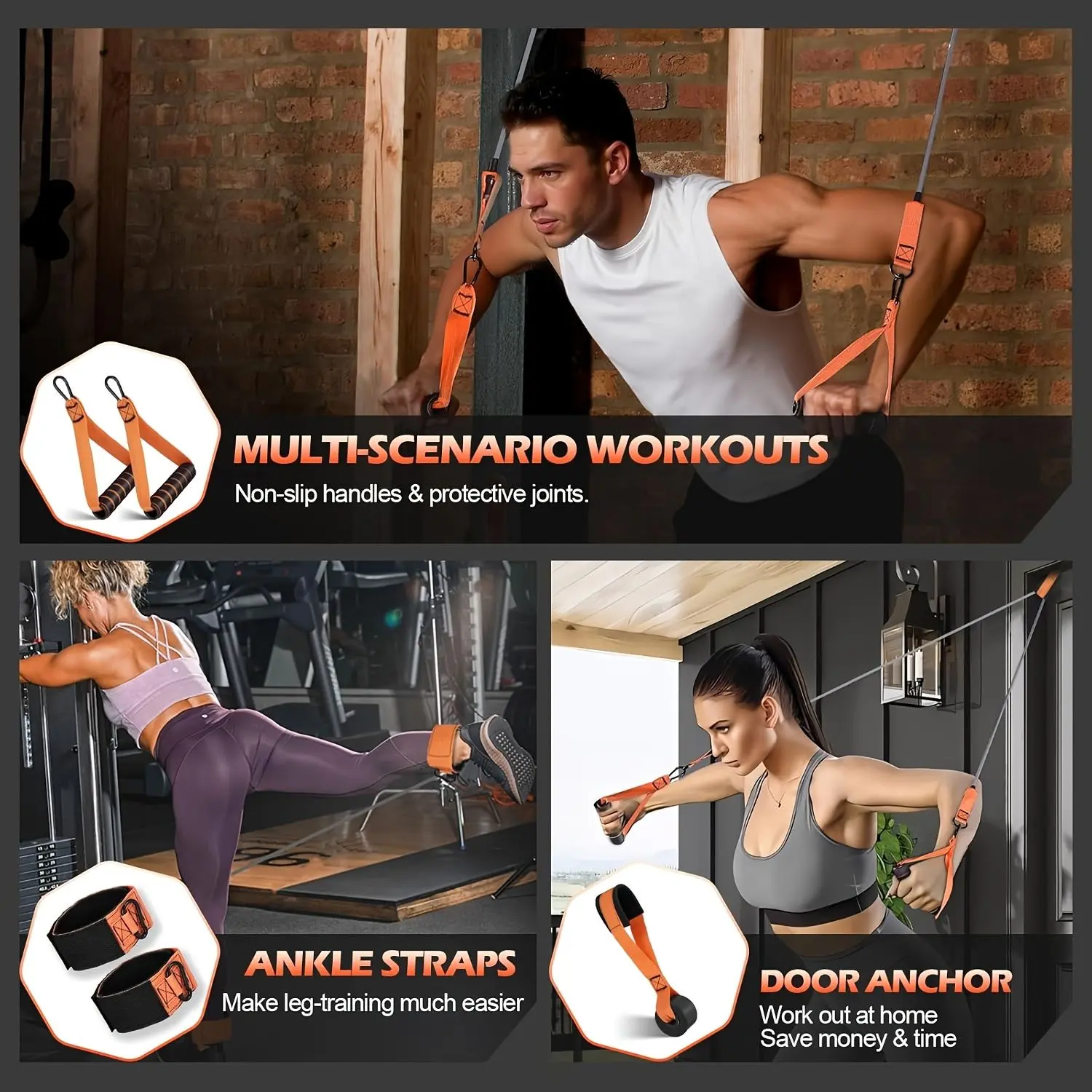 Replicate cable machine movements and target hard-to-reach muscle groups with ease. Adjust your stance and band setup to work your chest, back, legs, arms, and core. One set supports complete full-body muscle development.