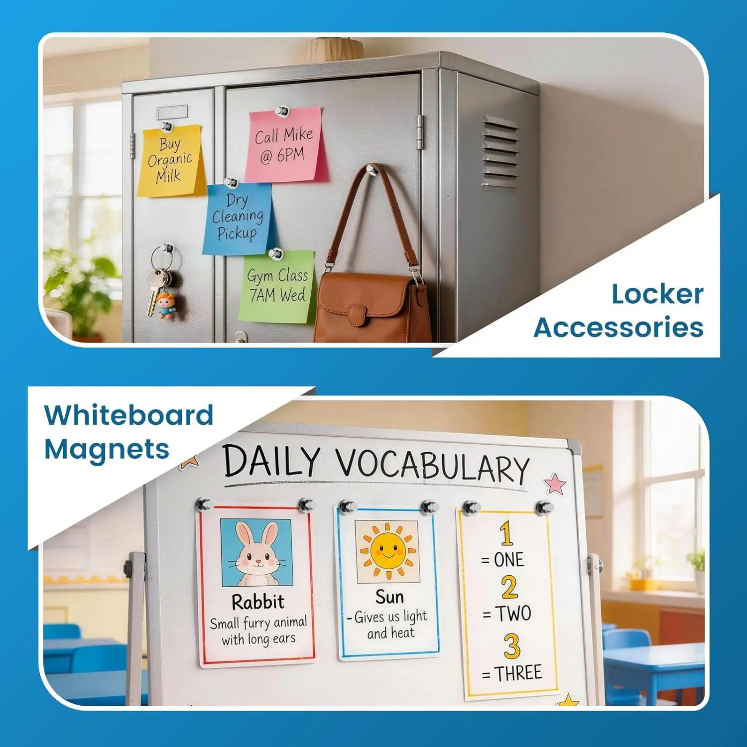 【WIDELY USED】: Heavy duty magnets are perfect for fridge, whiteboard, kitchen, office, school, hanging pictures, storage cabinet bulletin boards, magnetic maps, calendars, lockers, file cabinets and other magnetic surfaces.
