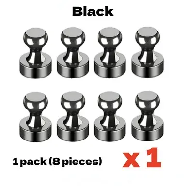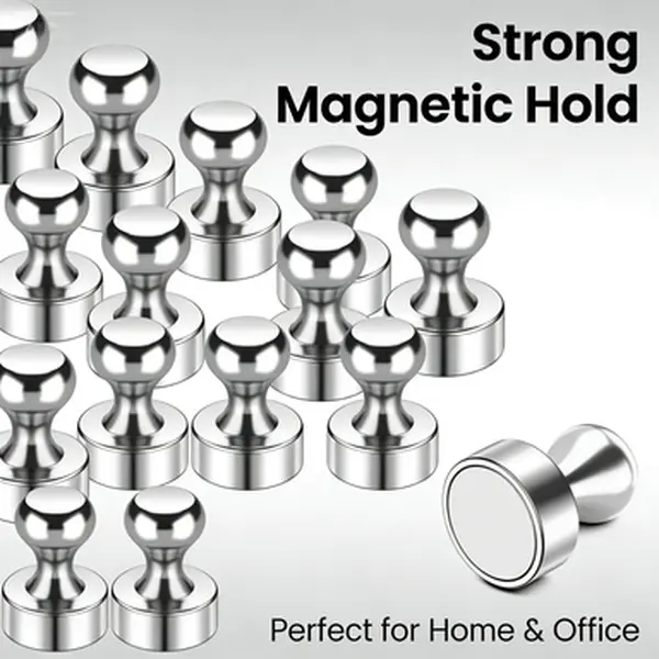 【STURDY AND DURABLE】: Rare earth magnets strong each one can holds up to 15 sheets of paper on any metallic surface. No more sliding papers with cheap magnets. These push pin magnets are tiny too so they won't cover up exact things you want to display.