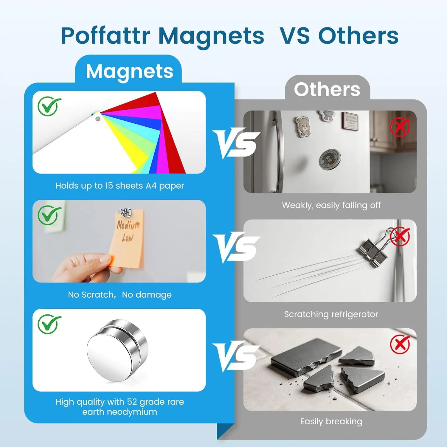 【PAY ATTENTION】: Magnets do not stick to non-metal materials such as GLASS BOARD, wood, plastic, textile, concrete, etc.