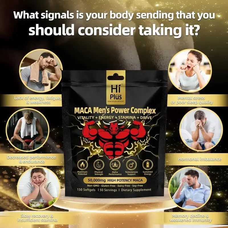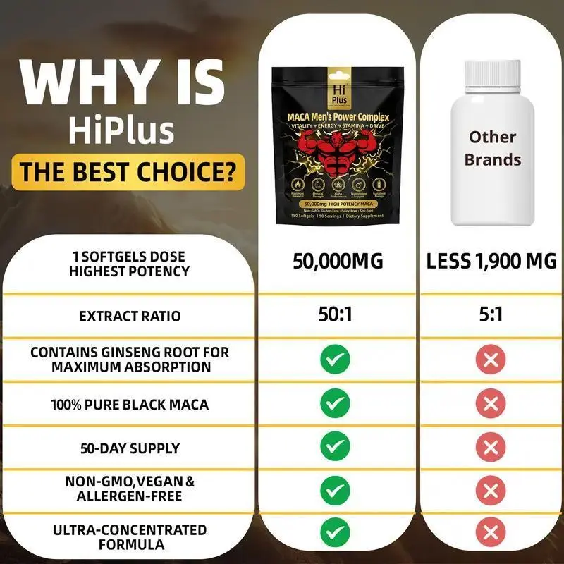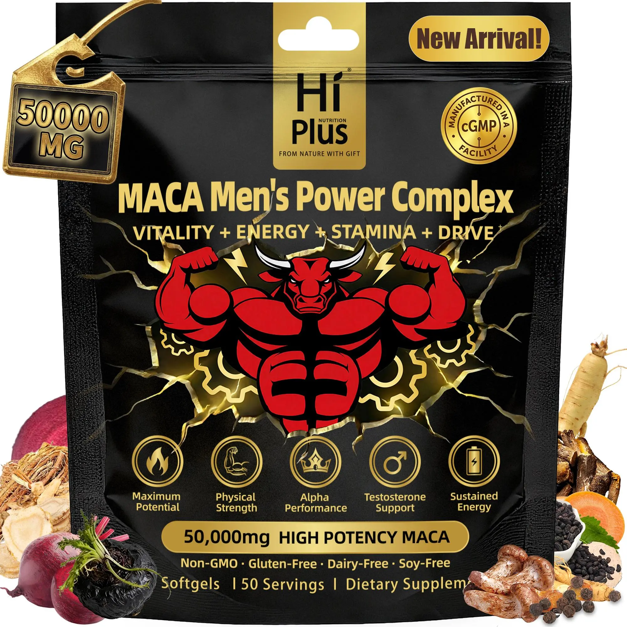 HiPlus 50,000mg Shilajit Maca Capsules with Ashwagandha & Panax Ginseng - Support Natural Energy, Stamina & Vitality for Men - 150 Softgels