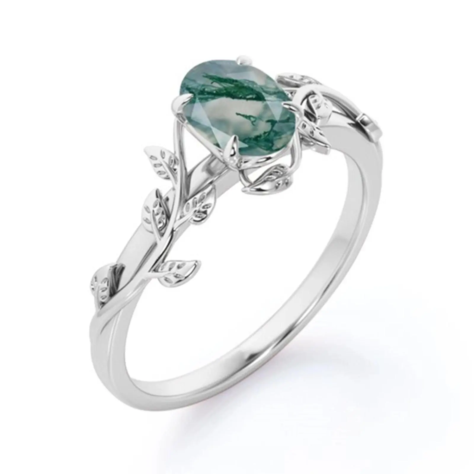 925 Sterling Silver Teardrop Moss Agate Engagement Ring Anniversary Ring Gift for Her Mother's Day Gift