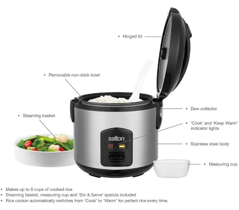 Make side dishes the easy way with this rice cooker that includes a steamer basket for veggies and a handy serving spatula. From Salton.