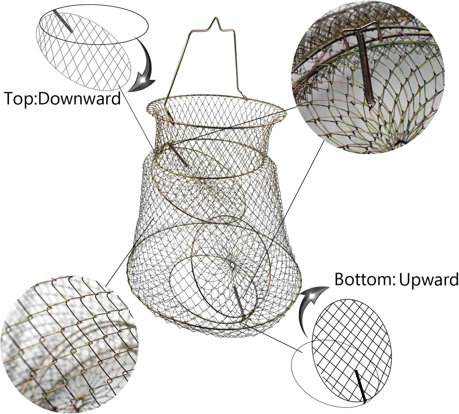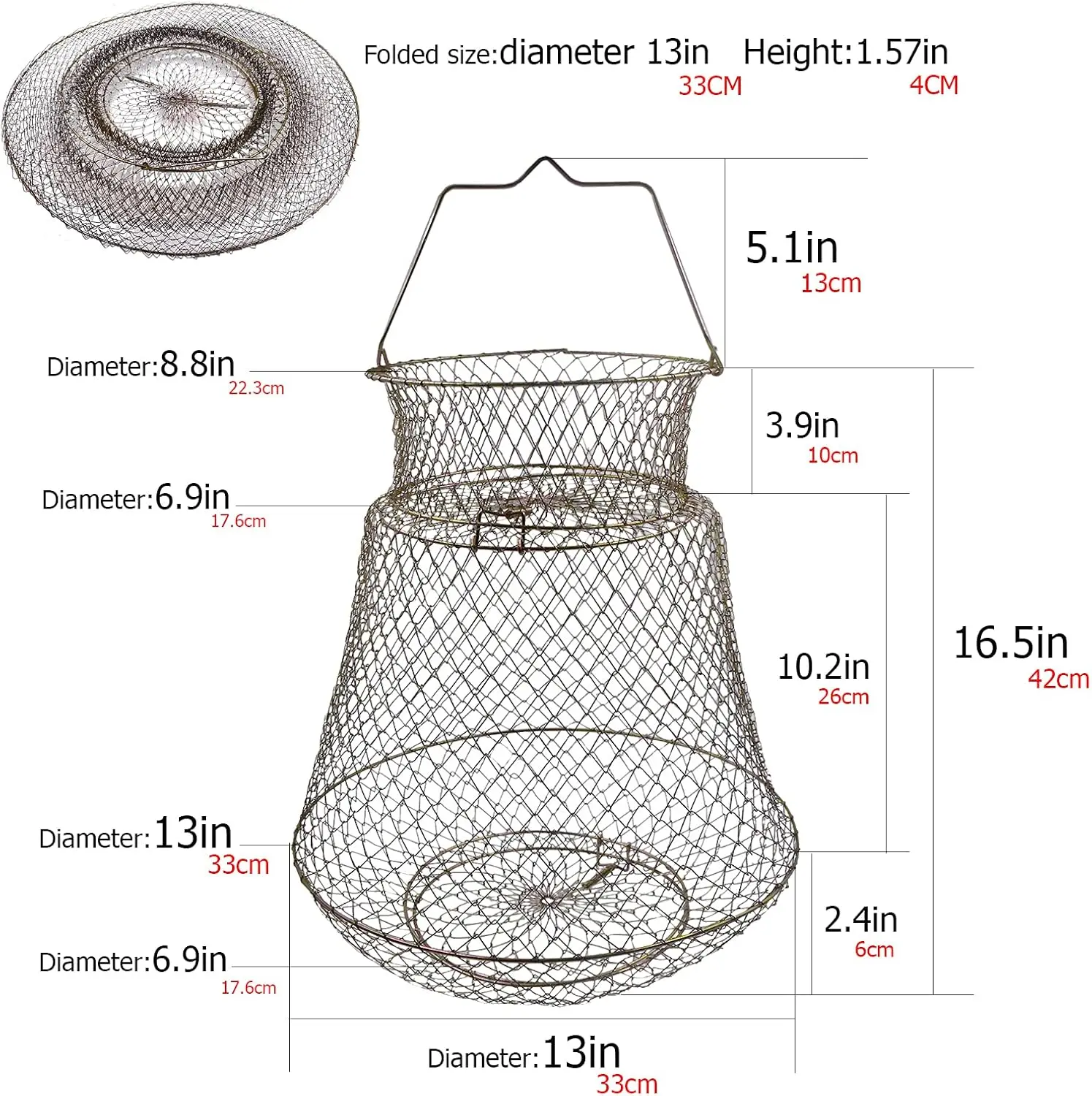 Metal Rustproof Collapsible Fish Basket - Robust and Easy to Use Net Cage for Live Fish