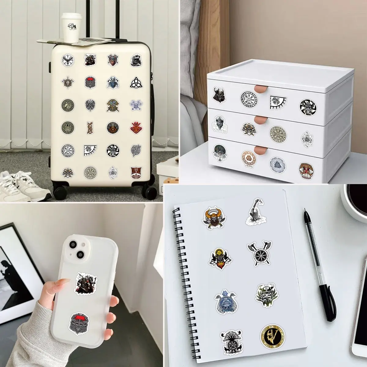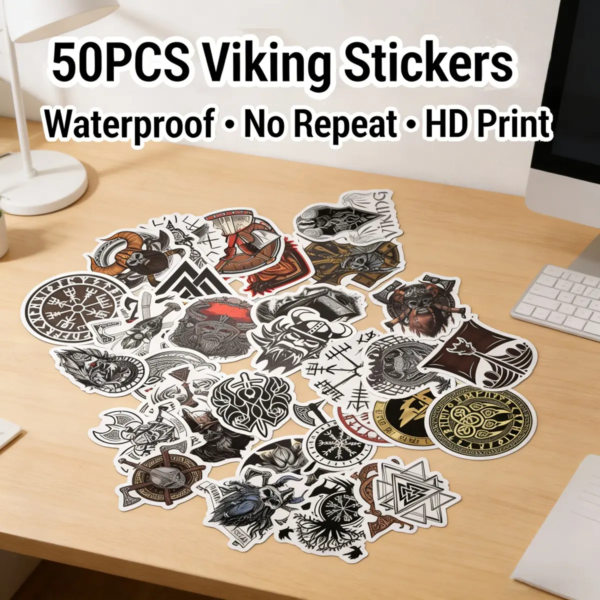 1Pc 50PCS Norse Viking Style Stickers Warrior Rune Myth Aesthetic Waterproof Vinyl Decals Cool Graffiti Sticker Pack for Laptop Water Bottle Phone Case Helmet Skateboard DIY Decor Gift for Men Teens Spring Summer Travel Outdoor Accessories
