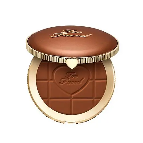 Too Faced Chocolate Soleil Blurring Matte Bronzer What It Is This cocoa-infused bronzer provides natural-looking sun-kissed effects and a blurred bronze finish. Indulge in all-over warmth and dimension with a silky-matte finish. What You Get 0.28 oz. Too Faced Chocolate Soleil Blurring Matte Bronzer What It Does This velvety bronzer effortlessly mimics the look of natural skin for a blurred sun-kissed effect and a rich bronze that smells as good as it looks. Buildable, blendable, matte blurring formula Mimics the look of natural skin Blurred sun-kissed effects Doesn’t settle Stays color true Infused with real cocoa powder Smells like chocolate!