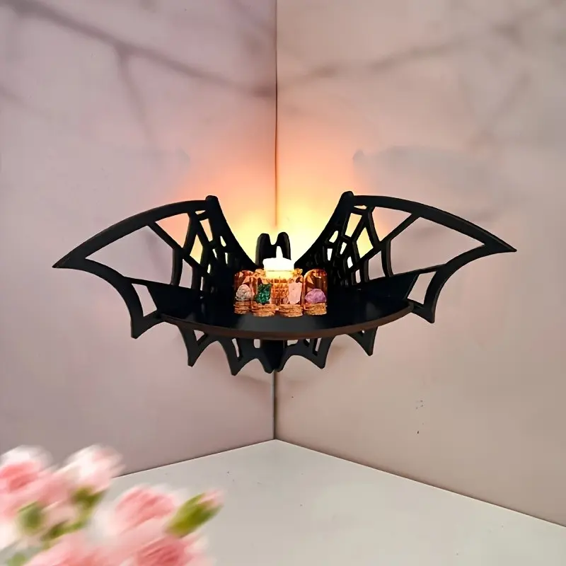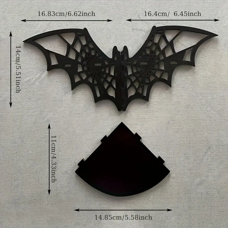 Bat Wall Shelf, Wooden Spider Bat Corner Rack, Halloween Decorative Wall Mount, Floating Display Stand, Art Animal Theme Room Accent