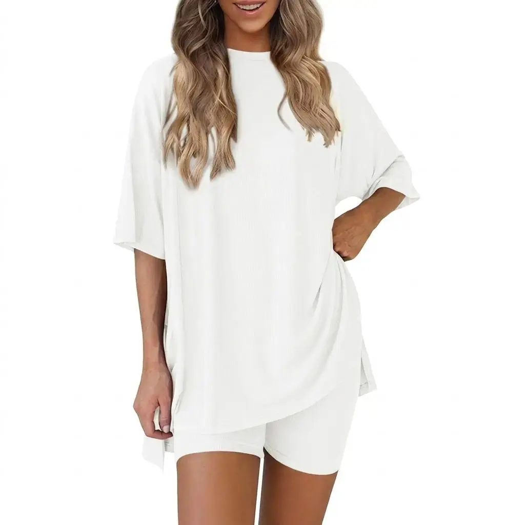 OVERSIZED & COMFORTABLE DESIGN: Enjoy unrestricted freedom with this ultra-comfy 2-piece set, featuring a super-relaxed dropped shoulder T-shirt and stretchy, supportive high-waist biker shorts. PREMIUM QUALITY FABRIC: Made from over 95% high-quality polyester, the material is exceptionally soft, skin-friendly, breathable, and maintains its shape after repeated washing. STYLISH & FUNCTIONAL DETAILS: The T-shirt boasts trendy side splits for a modern silhouette and ease of movement, while the high-waisted shorts provide a secure, flattering fit for both leisure and active wear. ULTIMATE VERSATILITY: Whether you are working out, practicing yoga, running errands, or simply lounging at home, this set offers the perfect blend of style and ease for any casual occasion. INCLUSIVE SIZING & TRENDY COLORS: Choose from a wide palette of popular solid colors like Black, Red, Khaki, and Green, and an extensive size range from XS to 4XL, designed to flatter all body types. Product Description (Detailed): Elevate your casual wardrobe with the ultimate fusion of comfort and contemporary style: this 2-Piece Women's Oversized T-shirt and Biker Shorts Set. Crafted from a superior-quality, soft-touch polyester fabric (over 95% composition), this ensemble is engineered for maximum relaxation and durability. The T-shirt features a super-loose, dropped-shoulder fit with modern side splits that provide both a chic look and superior ventilation. The matching biker shorts offer a supportive high-waisted design that contours your body while delivering excellent coverage and stretch for all-day comfort. This versatile set is a complete outfit solution. Pair it with sneakers for a quick workout, run errands in effortless style, or simply relax at home in the most comfortable loungewear. With a wide array of popular solid colors to choose from—including classic Black, vibrant Red, earthy Green, and more—and an inclusive size range from XS all the way to 4XL, you can find your perfect fit and color. Treat yourself to this everyday essential, your new go-to for effortless, chic, and comfy dressing. Please refer to our size chart to ensure the perfect fit. women's 2 piece set, oversized tee and biker shorts, women's lounge set, women's athleisure set, bike shorts outfit, dropped shoulder tee, high waist biker shorts, comfortable workout outfit, plus size 2 piece set, solid color set, jogger set alternative, running outfit women, comfy loungewear, stylish shorts set, everyday outfit, matching short set.