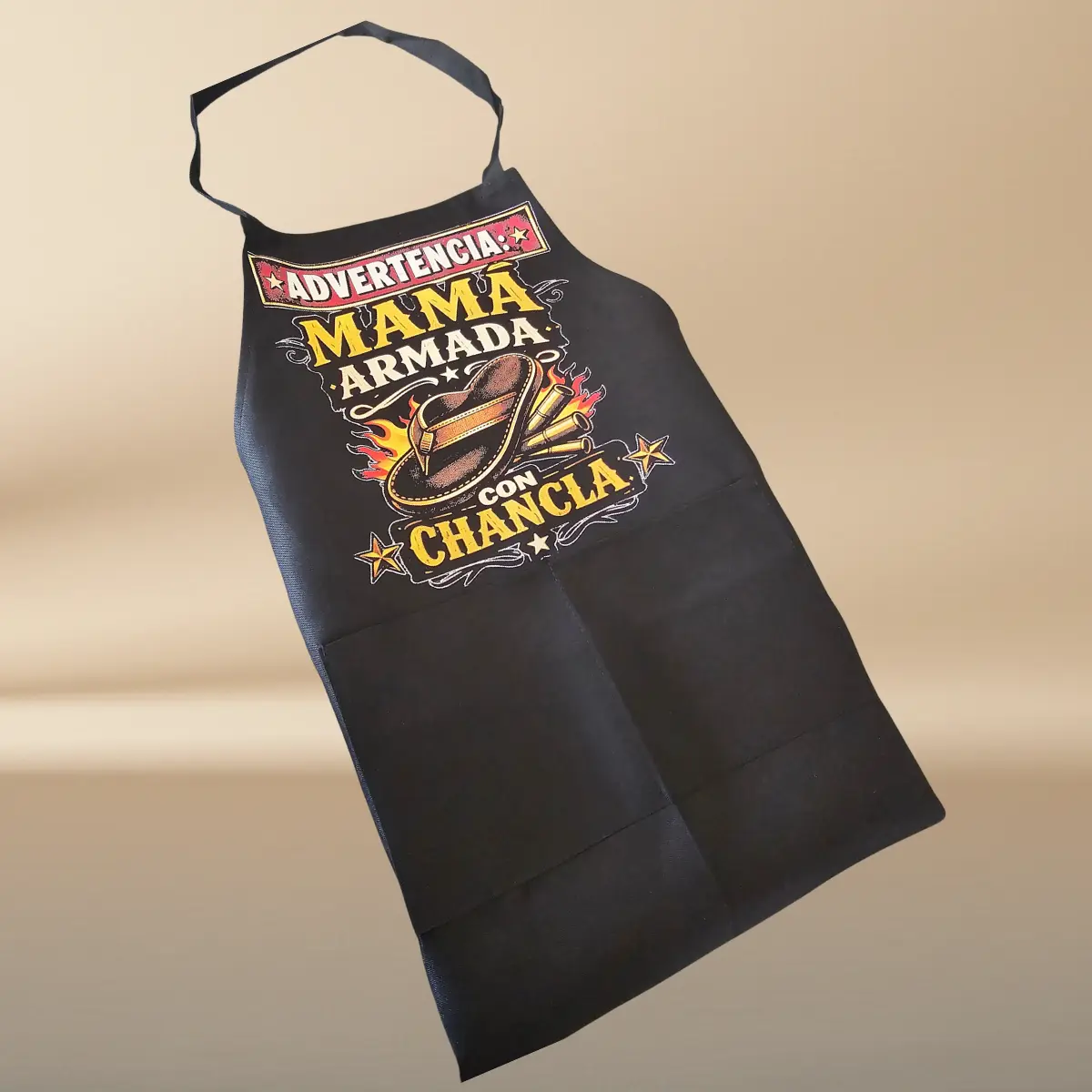 Celebrate Mom's legendary power with this Limited Edition Chancla Apron — the ultimate Mother's Day gift for the mom who rules the kitchen (and everything else). Featuring a bold 9.5×11" halftone chancla graphic and the iconic warning: "WARNING: MOM ARMED WITH CHANCLA," this 100% polyester black apron (24×30.5") is built to last and designed to make everyone smile. A truly special and unique gift for Mom. ❤️👡