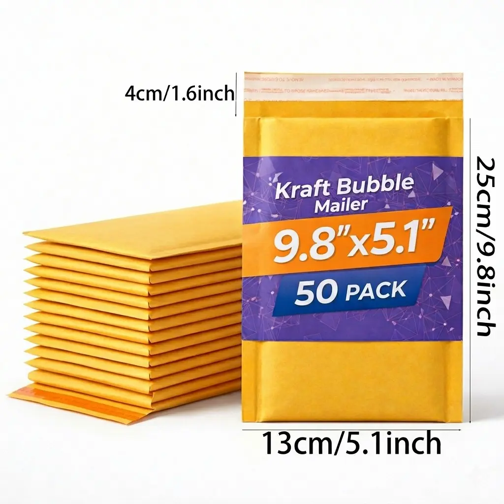50/100 Pcs of 5.1x9.8 Inch Bubble Mailers, ideal for packing medium-sized items like small clothing, jewelry boxes, electronic gadgets, and gift sets. The 50 Pcs option fits personal daily mailing needs (e.g., sending handmade products), while the 100 Pcs bulk pack meets small business shipping demands, cutting down per-unit costs effectively.