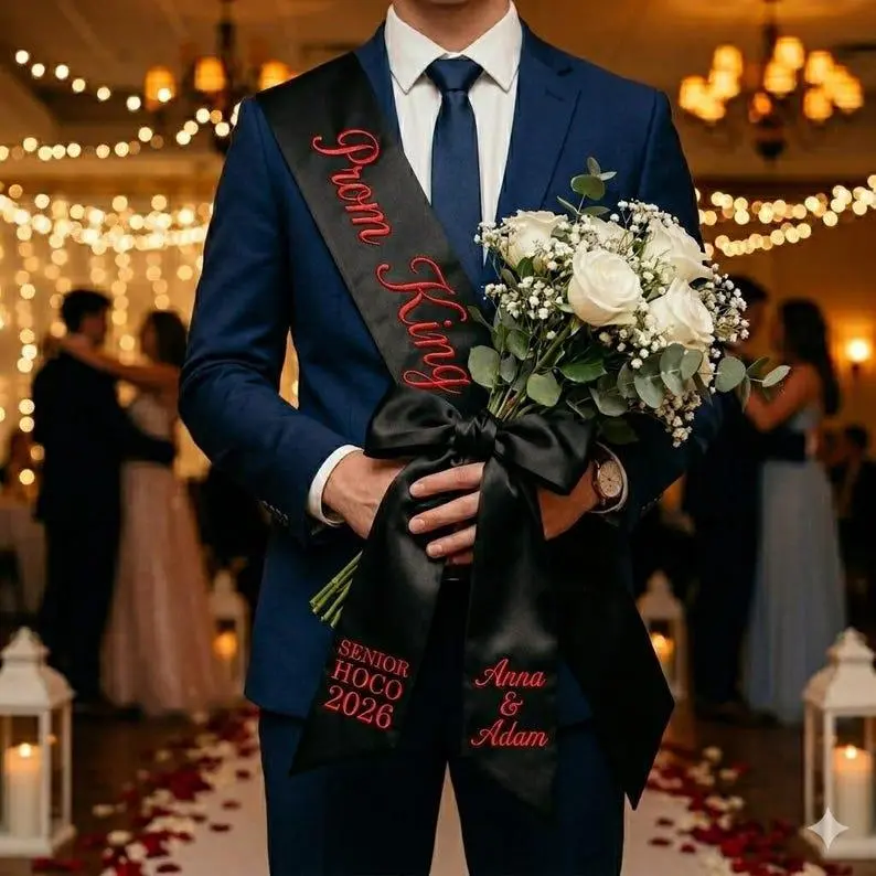 Embroidered Senior Prom Bouquet Sash, Prom Bouquet Bow, Custom Graduation Name Ribbon Sash, Monogram Ribbon, Gift for Her