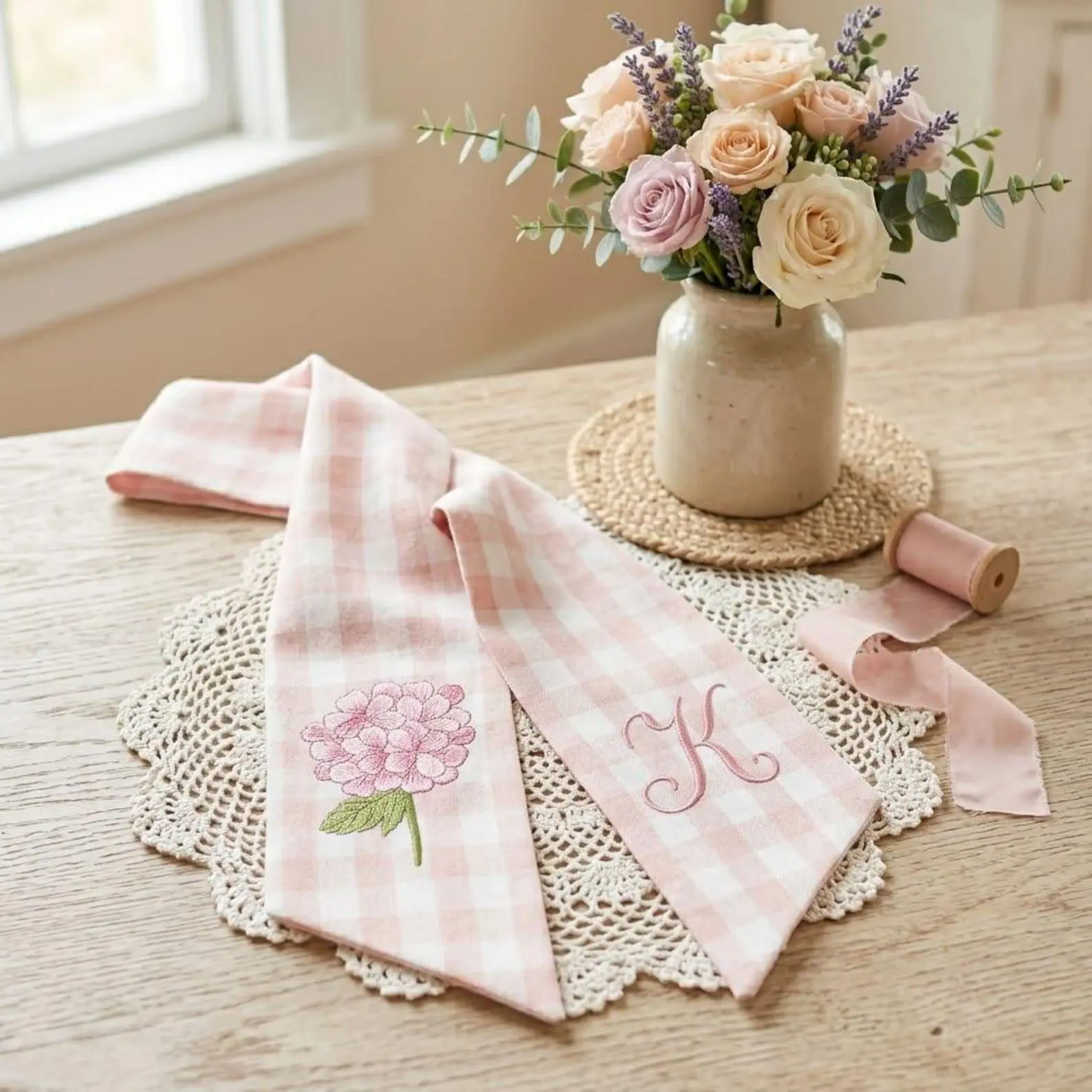 Each sash features detailed, high-quality embroidery with clean stitching and elegant designs. The monogram or artwork stands out beautifully, giving your wreath a refined and personalized look.