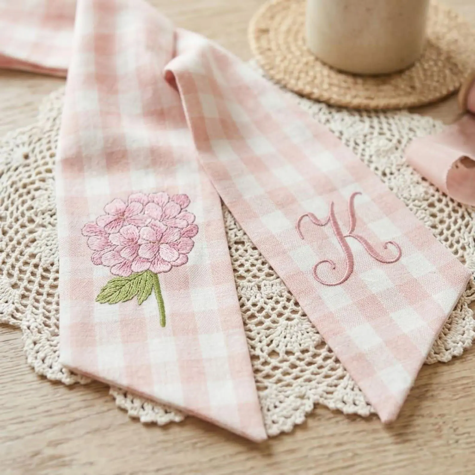 Embroidered Hydrangea Wreath Sash Bow, Seasonal Flower Toile Front Door Bow, Personalized Initials Home Decor, Housewarming Gift