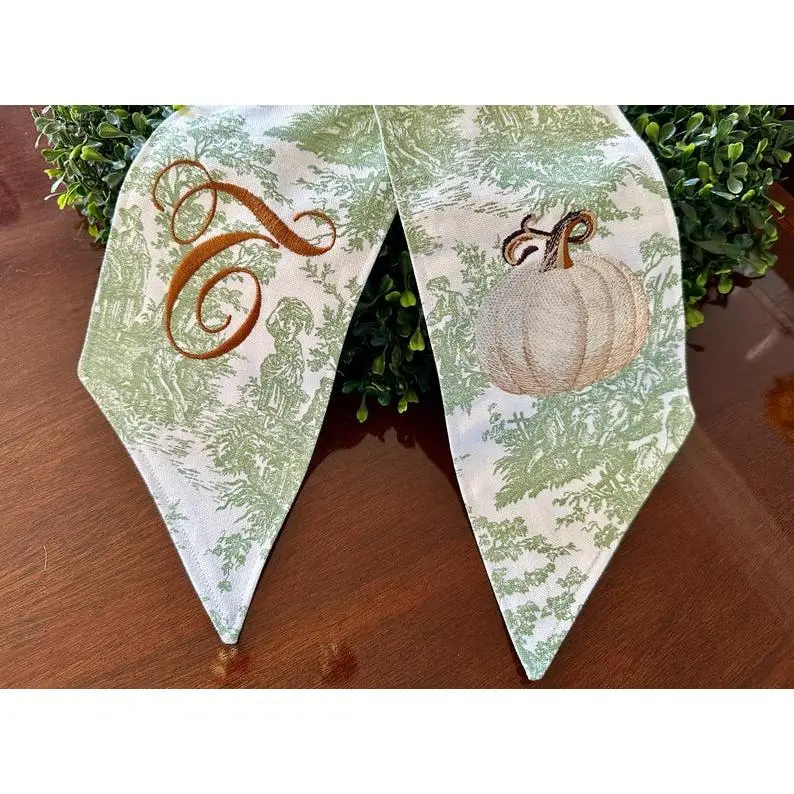 5. Monogrammed Autumn Toile Wreath Sash: Elegant Pumpkin Door Swag