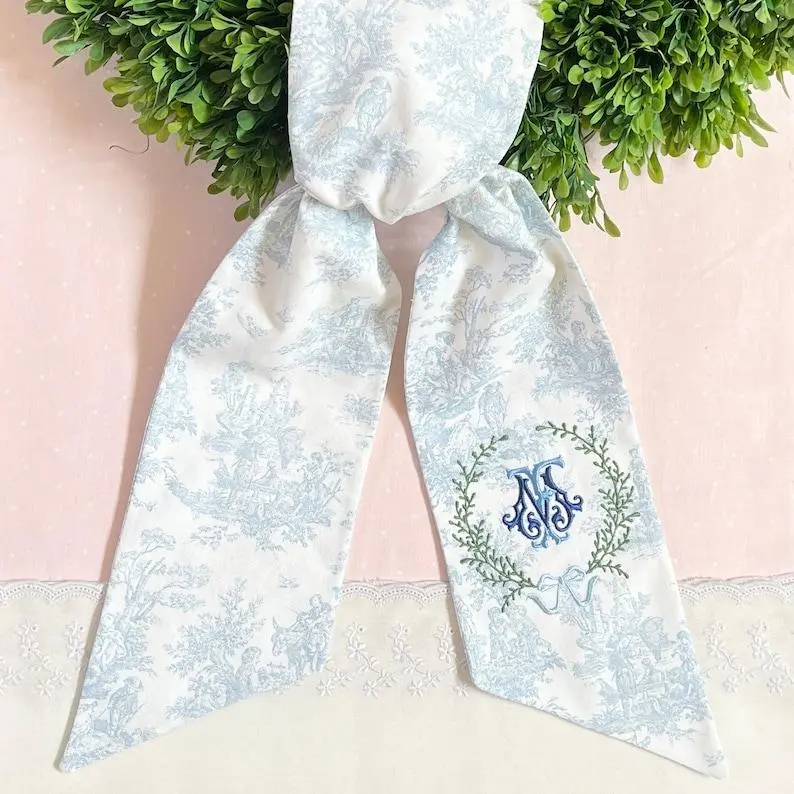 "Elegant Embroidered Wreath Sash – A Charming Touch for Your Front Door