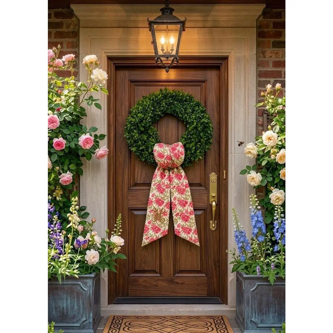 Add a beautiful and welcoming accent to your home with this high-quality Wreath Sash. Designed to drape perfectly over your door wreath, this decorative sash instantly elevates your front door and creates a warm, inviting look for guests.