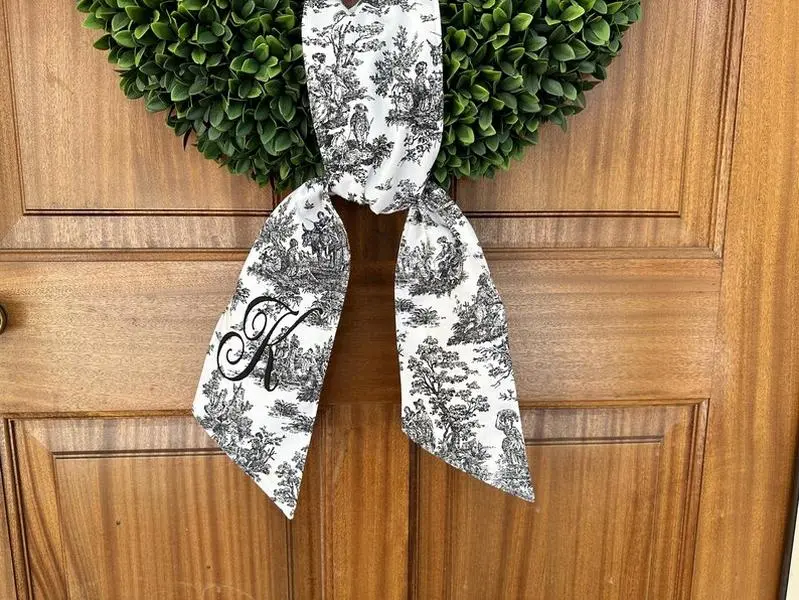 Make your front door stand out with a charming wreath sash that adds personality and elegance to any home."