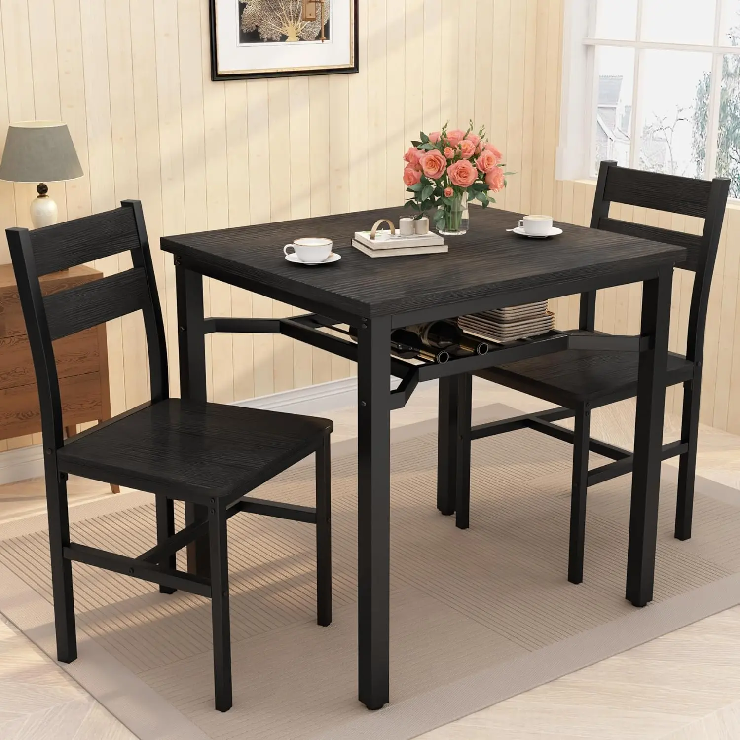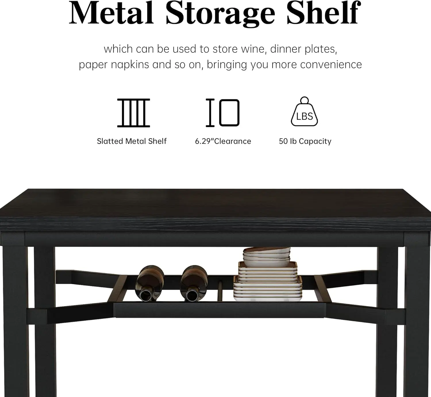 ·Storage Space: This dining room table set has a metal storage shelf that is very sturdy and can hold up to 50 pounds, which can be used to store wine, dinner plates, paper napkins and so on, bringing you more convenience.