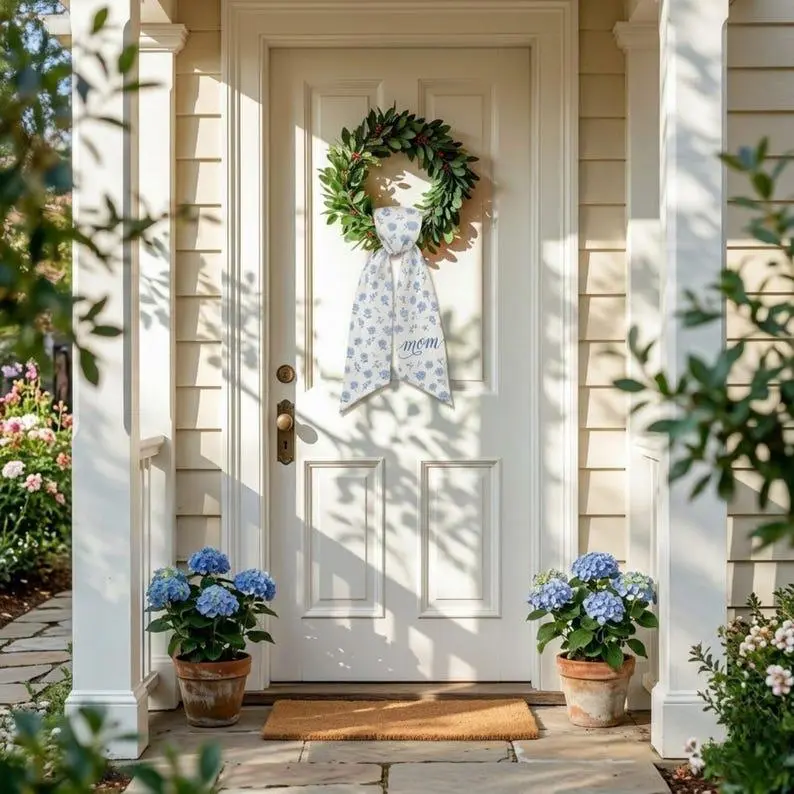 Mother's day wreath sash door💙🎀#wreath #wreathsfordoor #frontdoordecor #sash #fyp