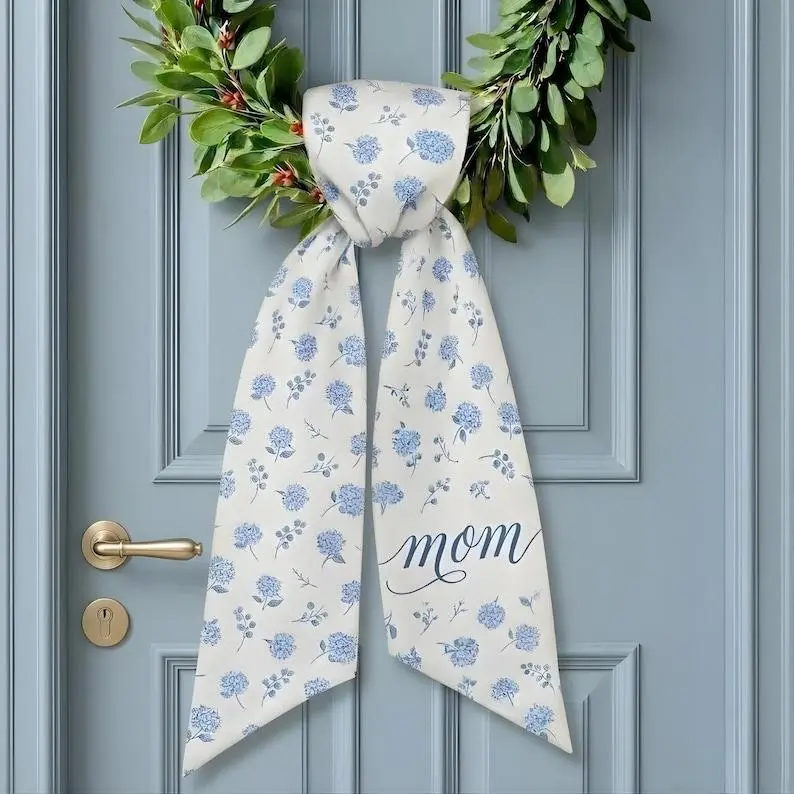 5. Mother's Day Wreath Sash Door, Mom Floral Wreath Sash, Blue Floral Door Wreath Bow, Mother's Day Front Door Decor, Spring Wreath Ribbon