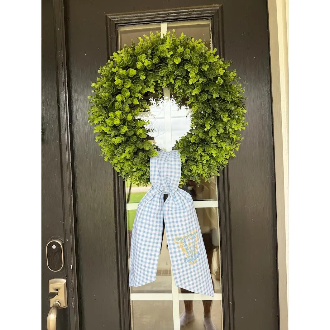 5. Blue gingham Wreath Scarf – Personalized Monogrammed Fabric Sash for Wreath & Door Decor