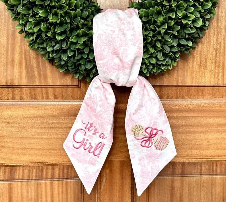 "Elegant Embroidered Wreath Sash – A Charming Touch for Your Front Door