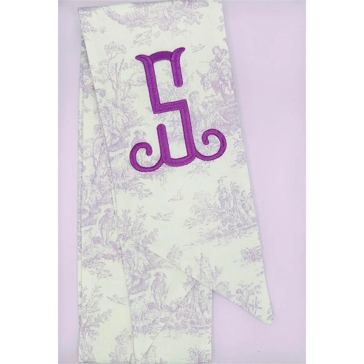 Monogrammed Lavender Toile Wreath Sash for Front Door - Personalized Embroidered Easter Spring Home Decor