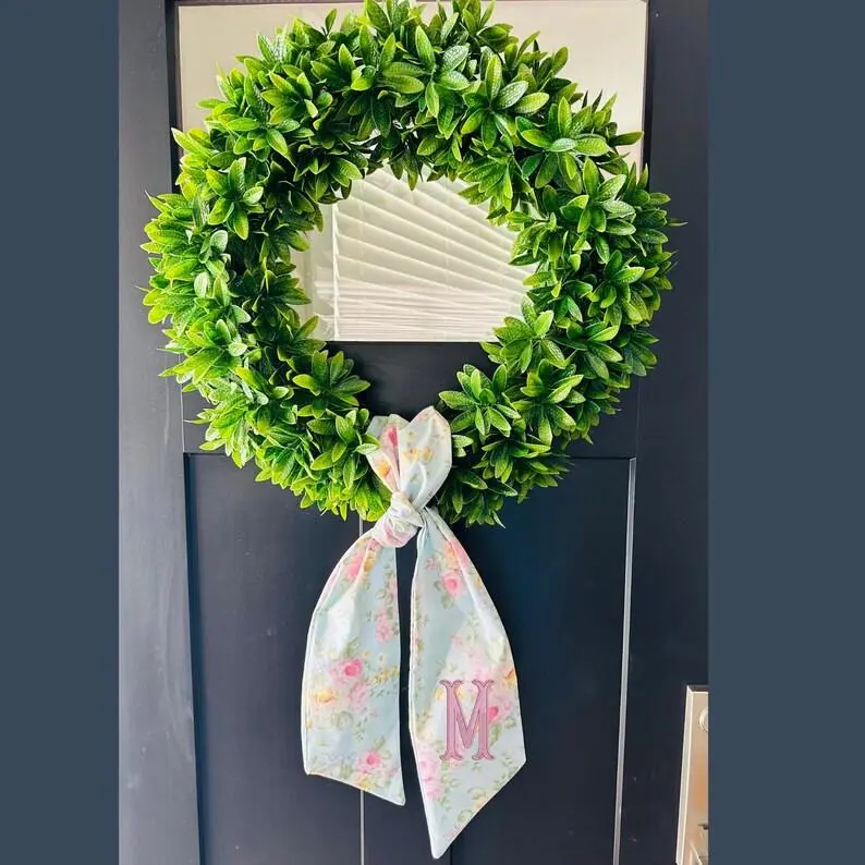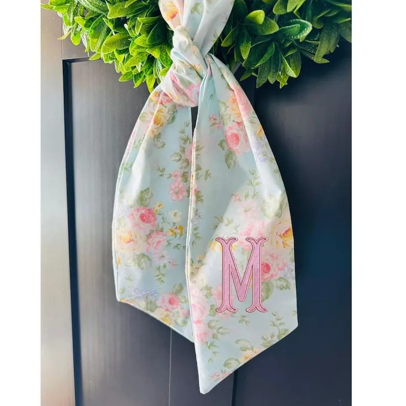 5. Personalized Wreath Sash with Embroidered Monogram | Custom Floral Door Hanger Bow | Preppy Front Door Decor | Spring Summer Wreath Accent
