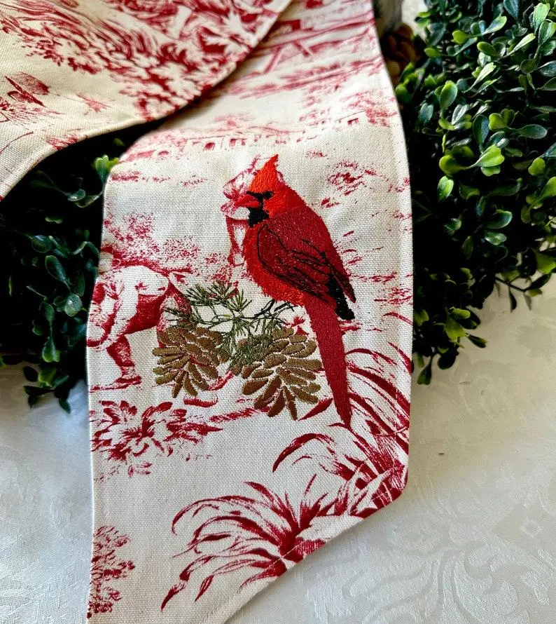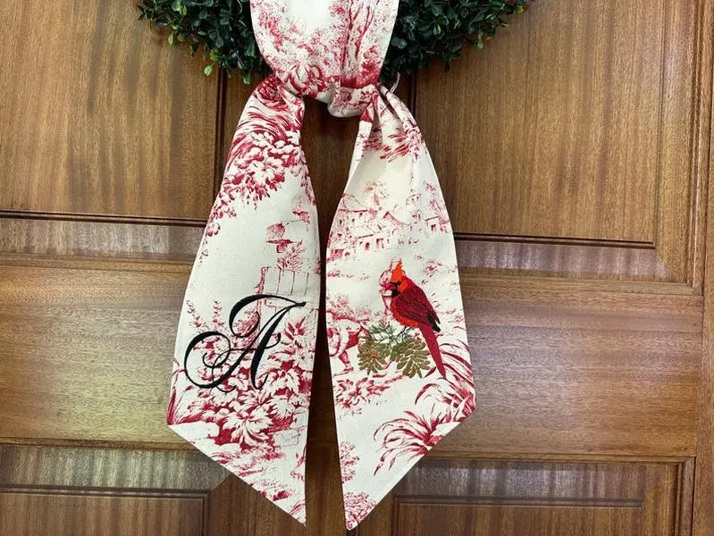 5. Cardinal red toile winter wreath sash, monogrammed winter front door swag, bereavement gift