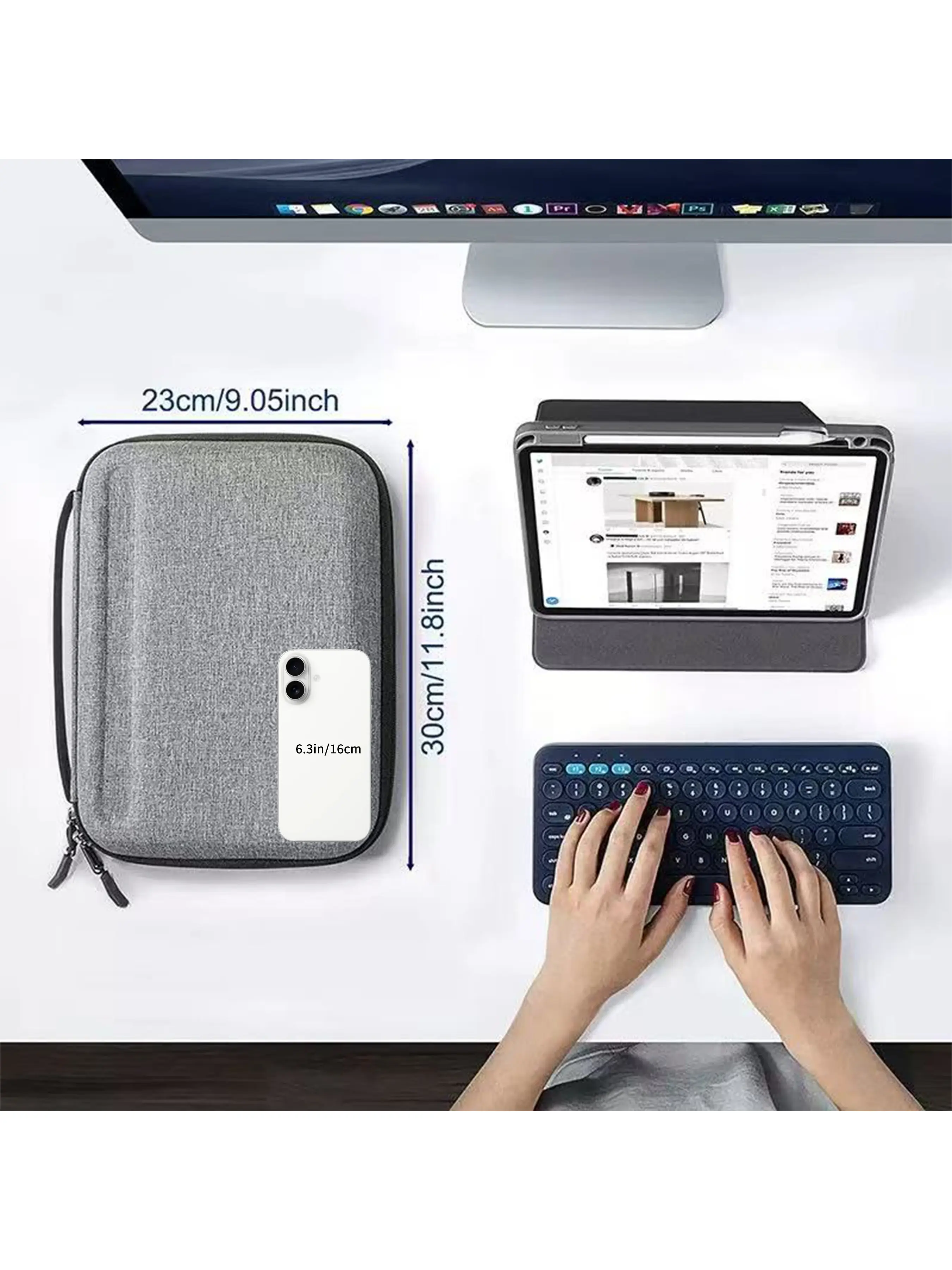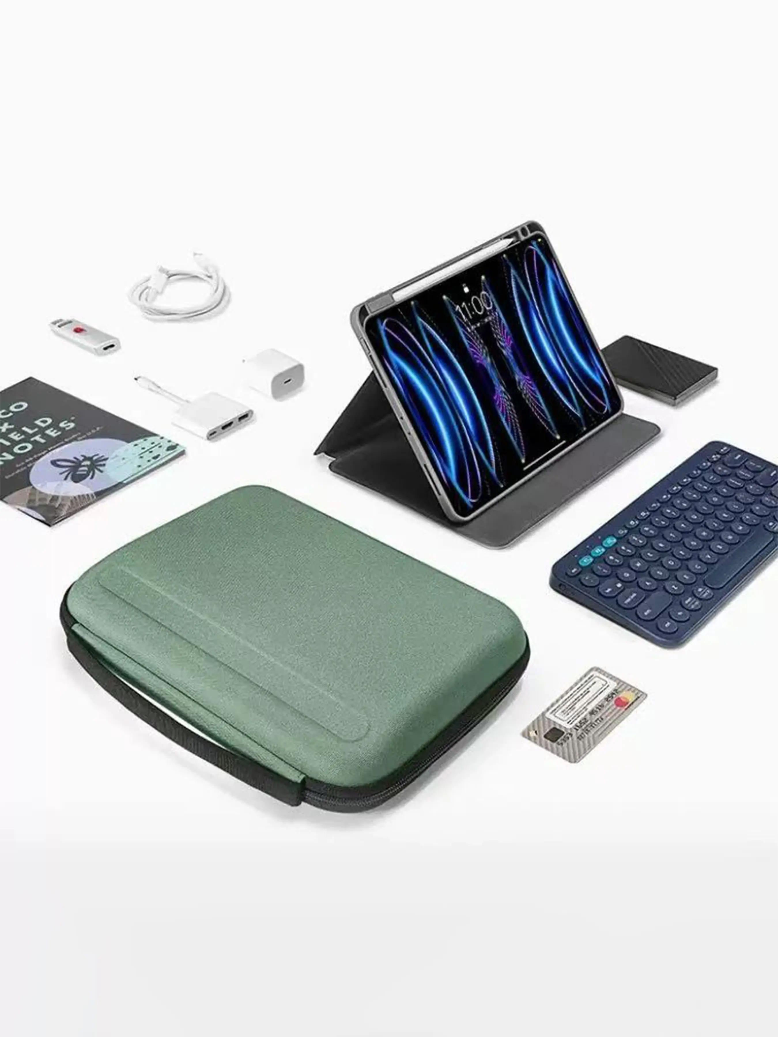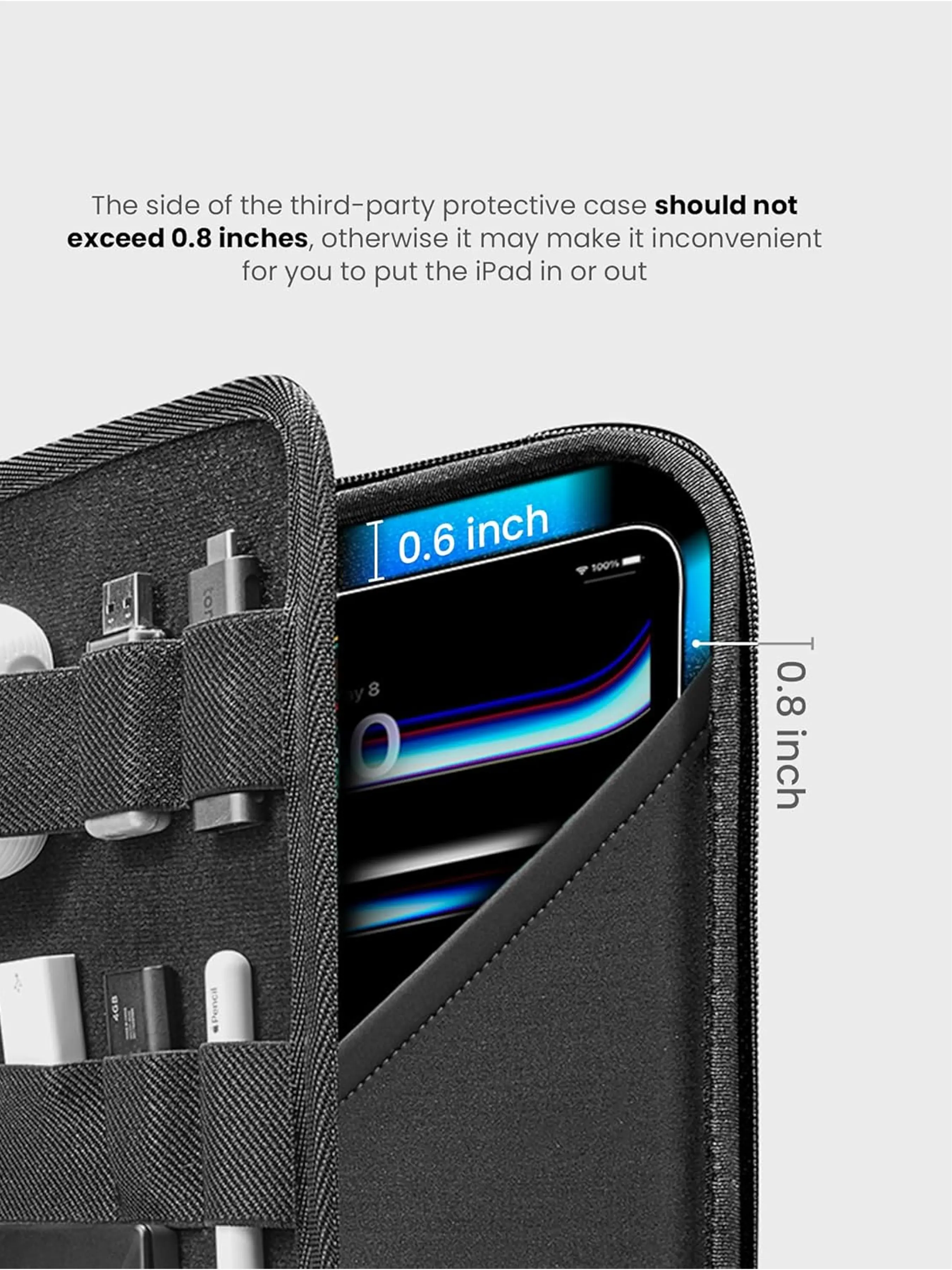 What You Get: 13 inch Portfolio Case (cables, pens, iPad Pencil, adapters, power bank, cards, iPad are not included)