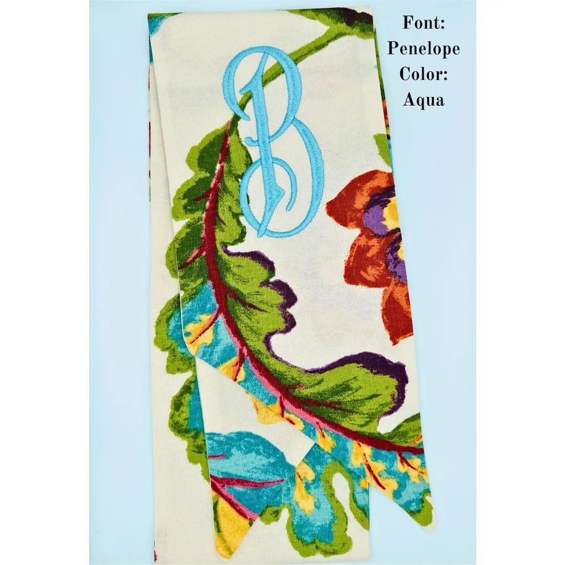Monogram floral green chinoiserie wreath sash for front door, personalized embroidered spring Easter wreath sash, custom wedding shower gift