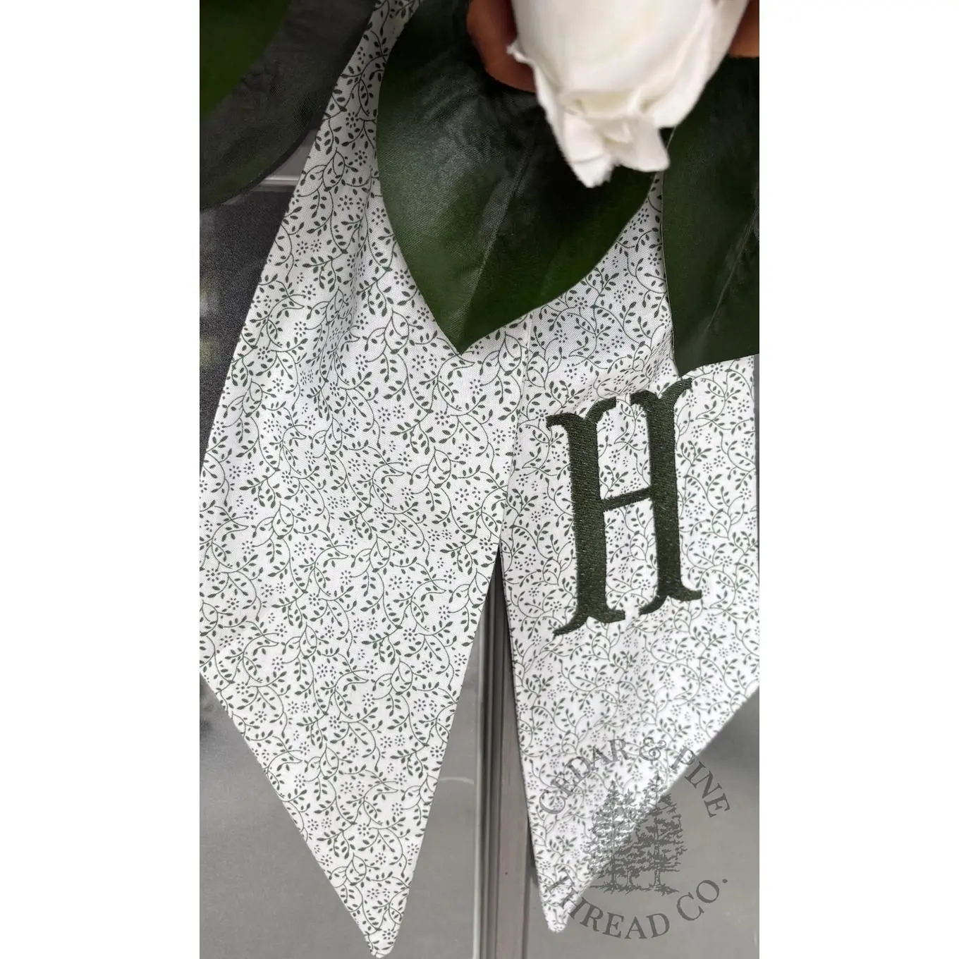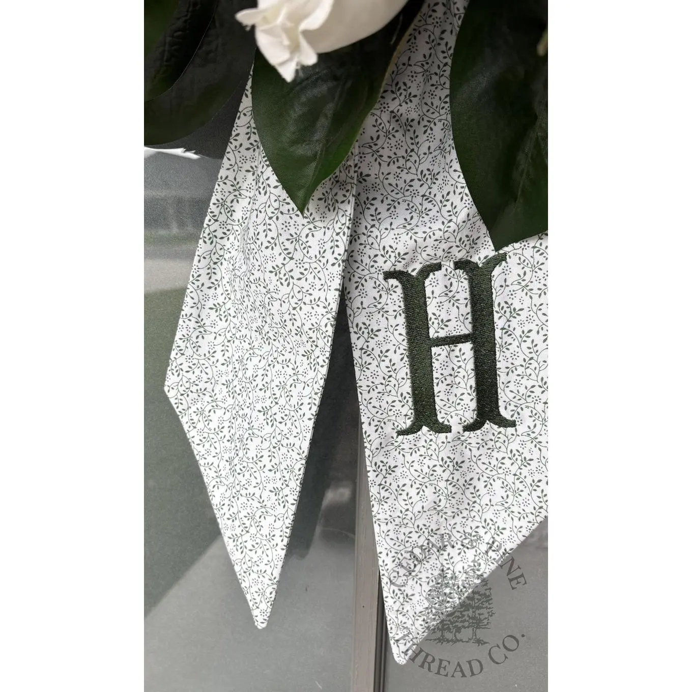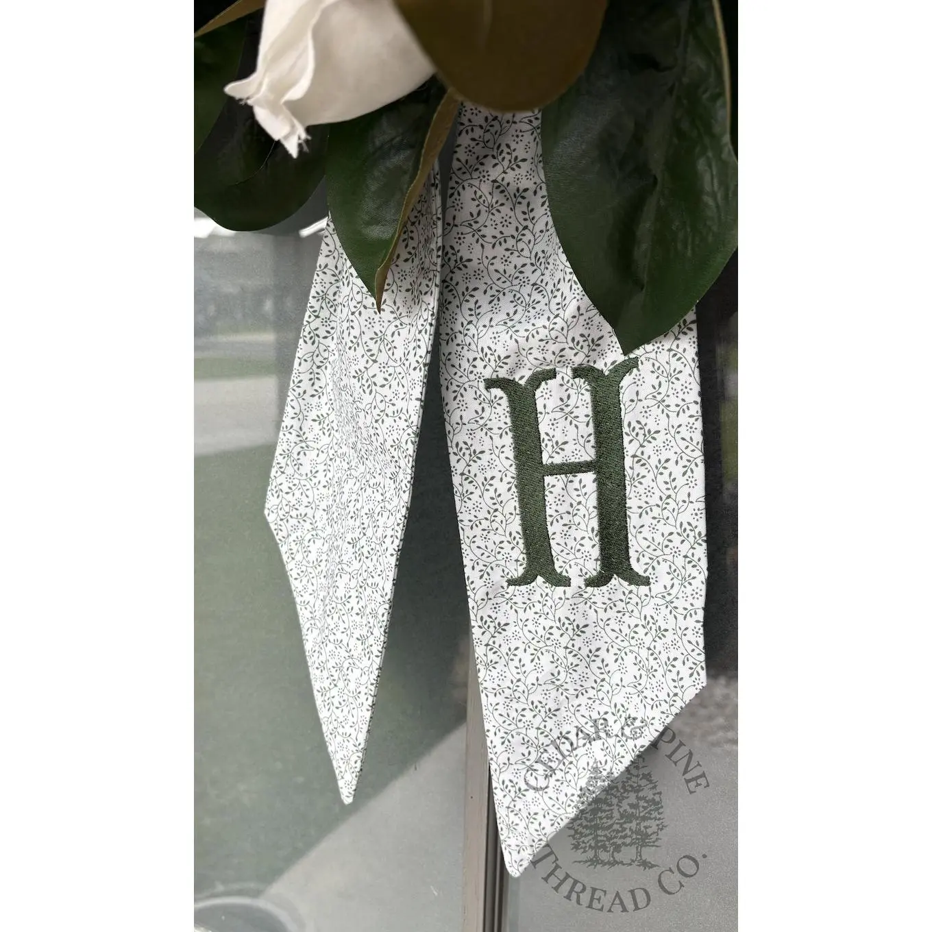 Personalized Monogram Wreath Sash, Green Floral Door Hanger Bow