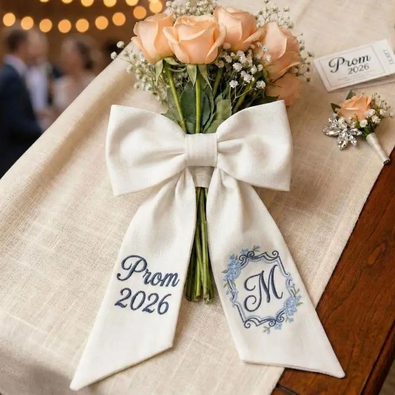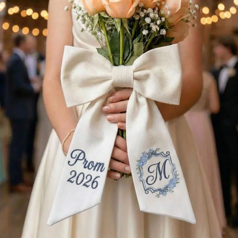 Embroidered Prom Bouquet Sash, Custom Prom 2026 Bow, Personalized Floral Monogram Bouquet, Keepsake Gift for Daughter, Sash for Prom